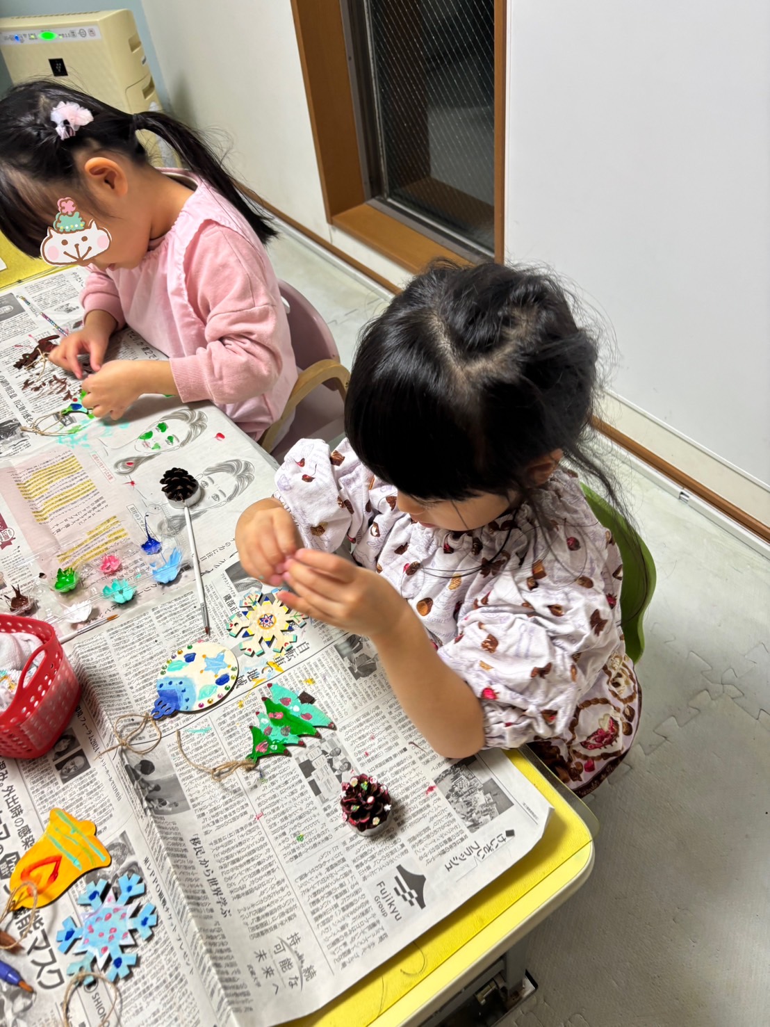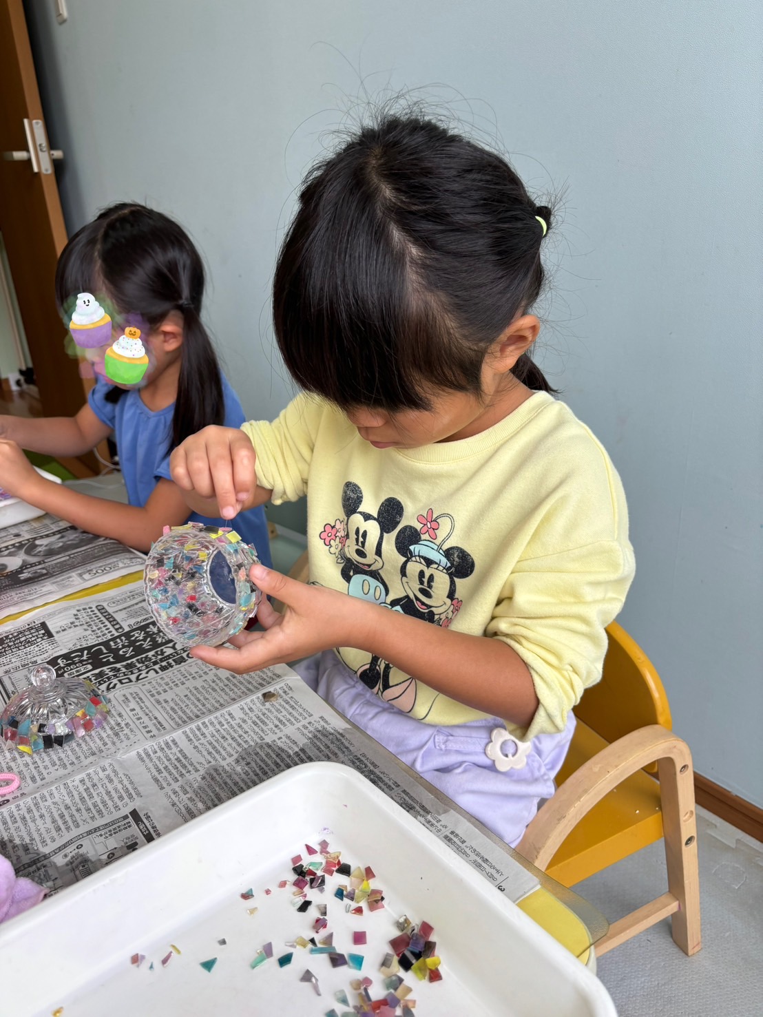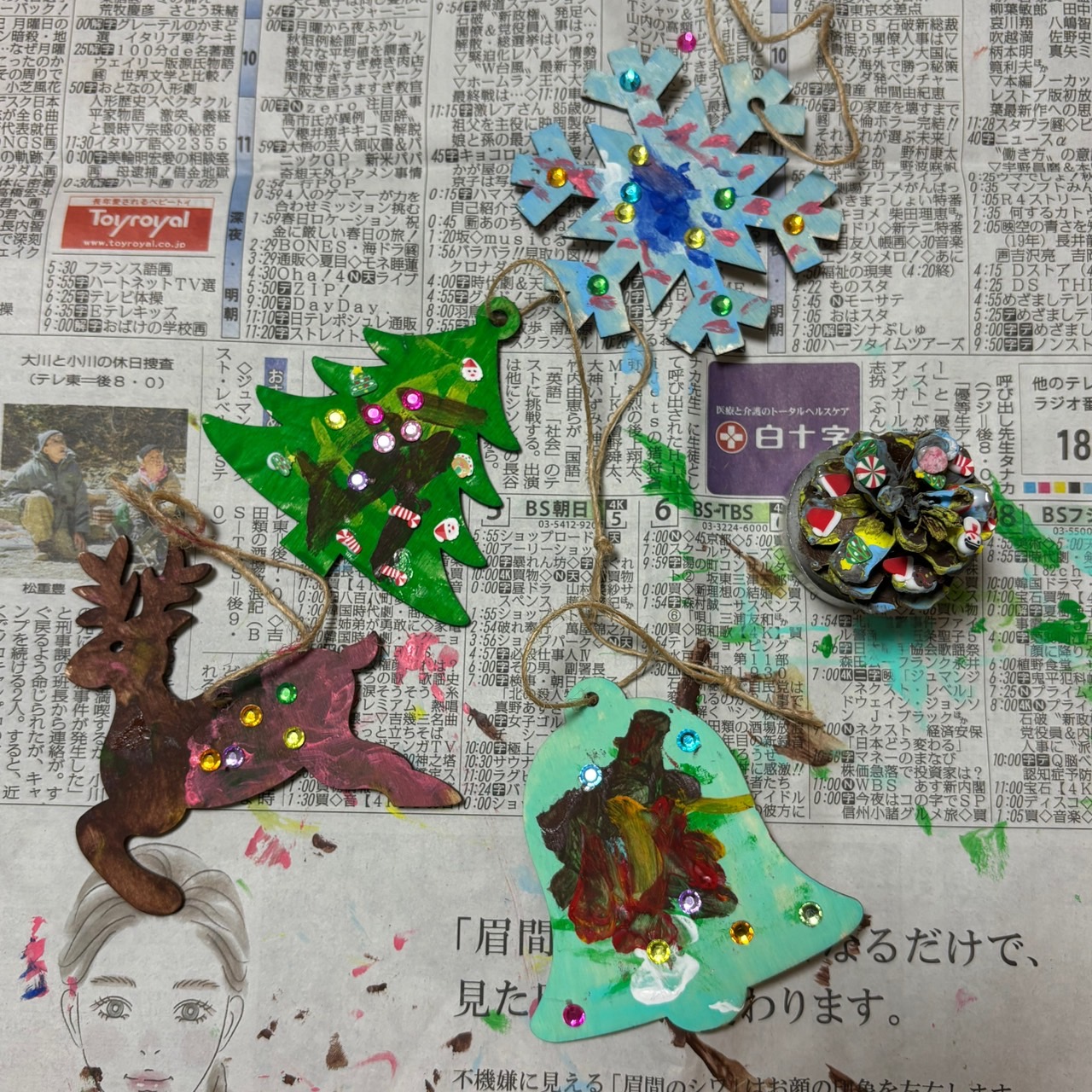 ストローを刺したり、ビーズで飾ったり、思い思いに満足いく作品ができたようです☺️✨