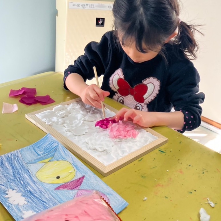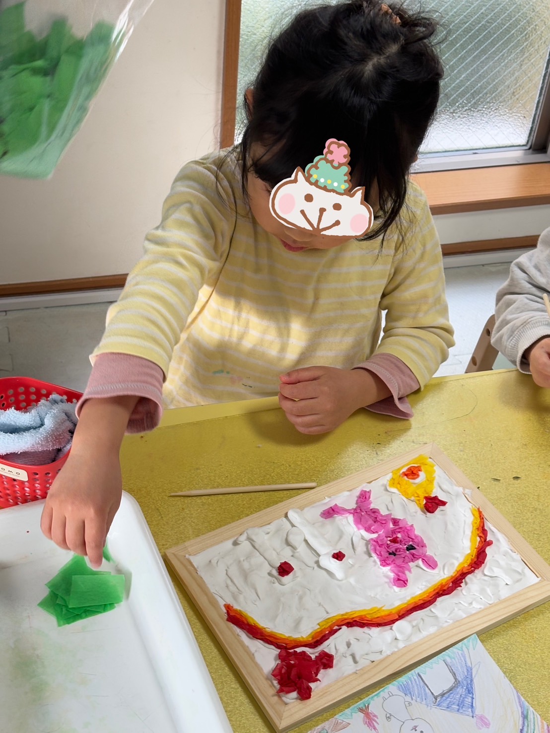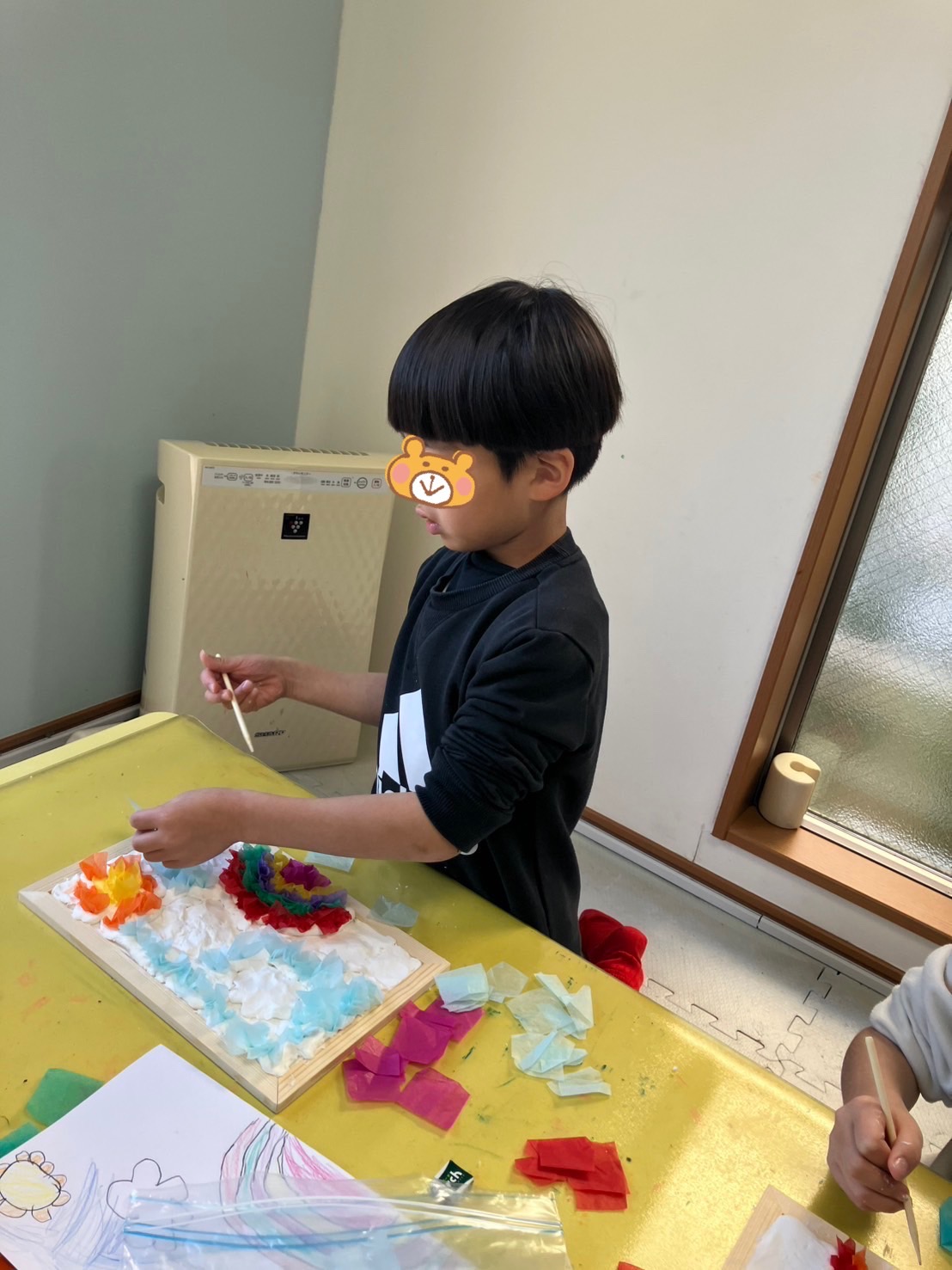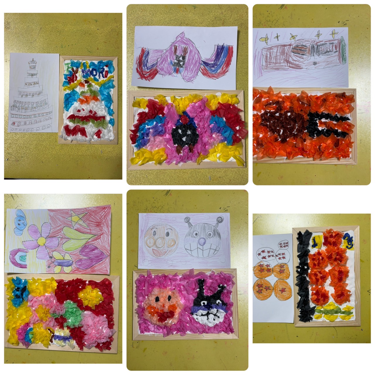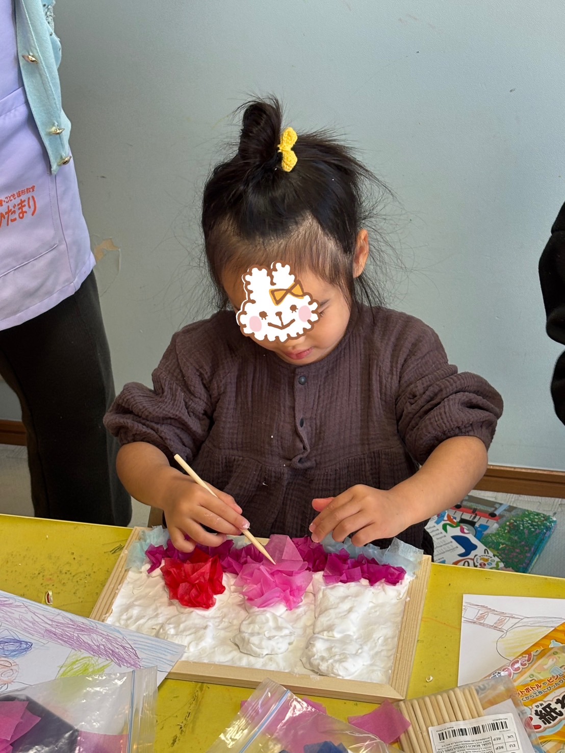 用意した花紙の色を見て、どの色を使うのか、しっかり確認しながら色塗りをしたので、作品作りがスムーズに行えました✨