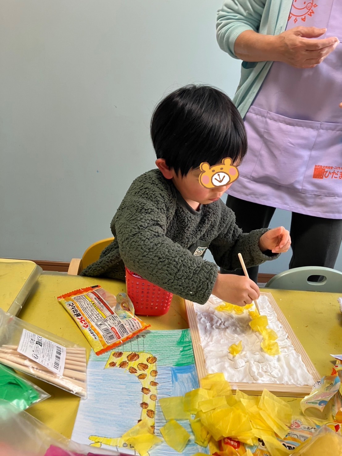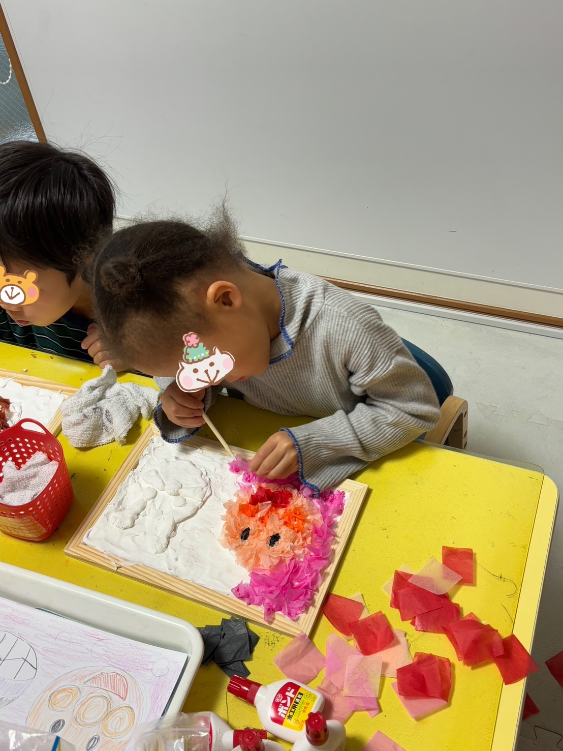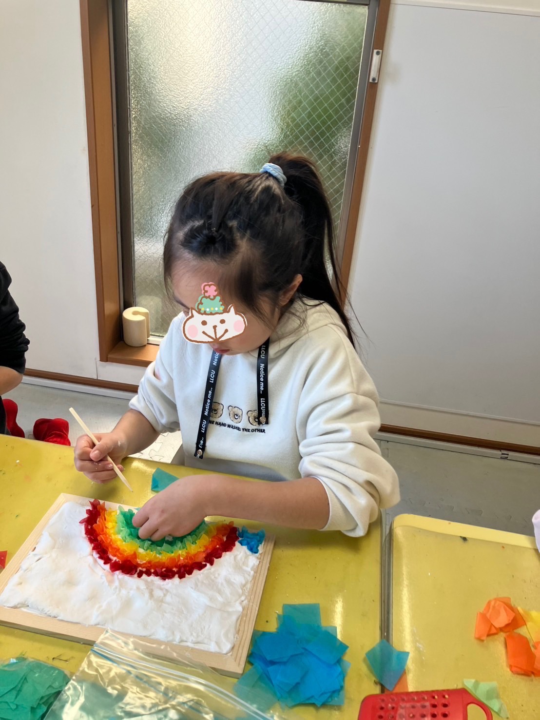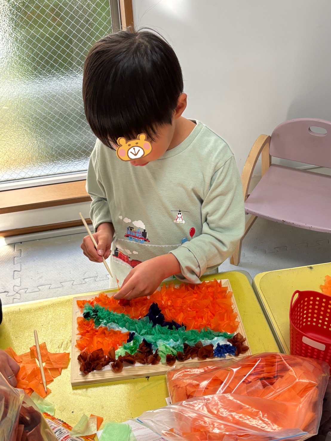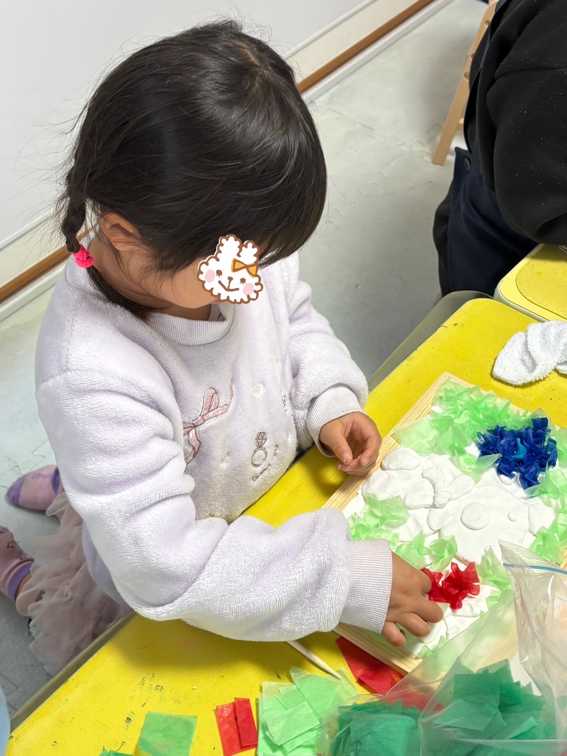 用意した花紙の色を見て、どの色を使うのか、しっかり確認しながら色塗りをしたので、作品作りがスムーズに行えました✨