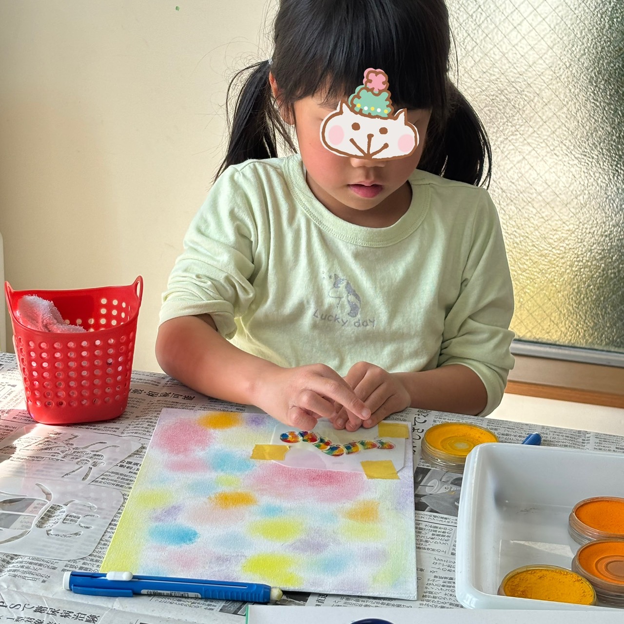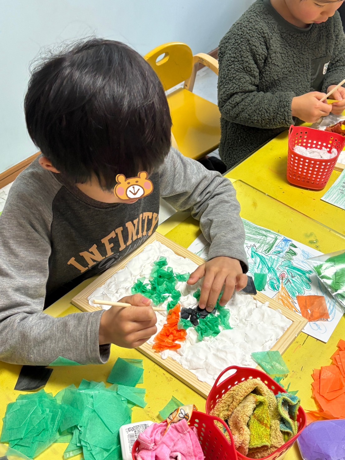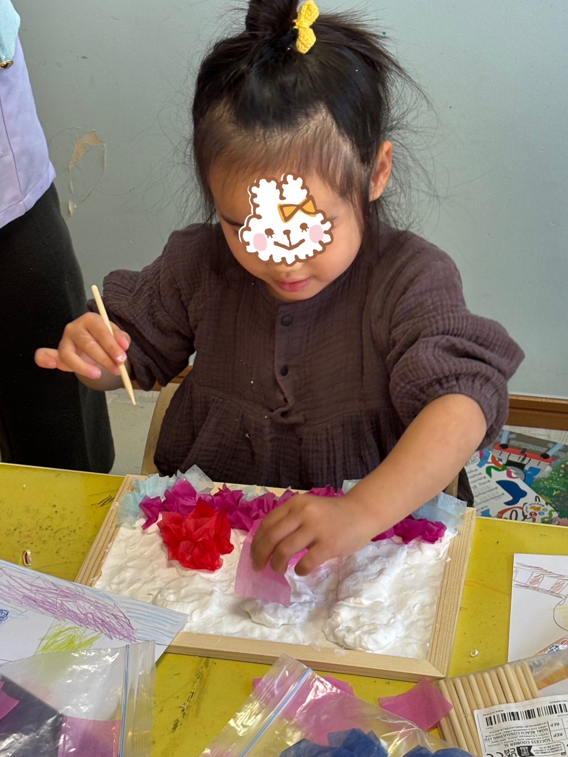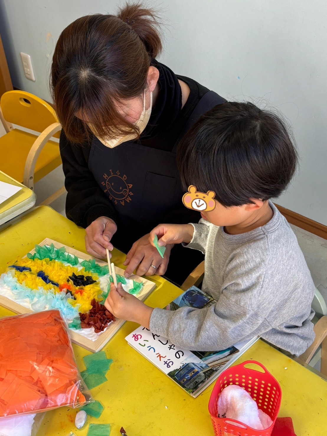 用意した花紙の色を見て、どの色を使うのか、しっかり確認しながら色塗りをしたので、作品作りがスムーズに行えました✨