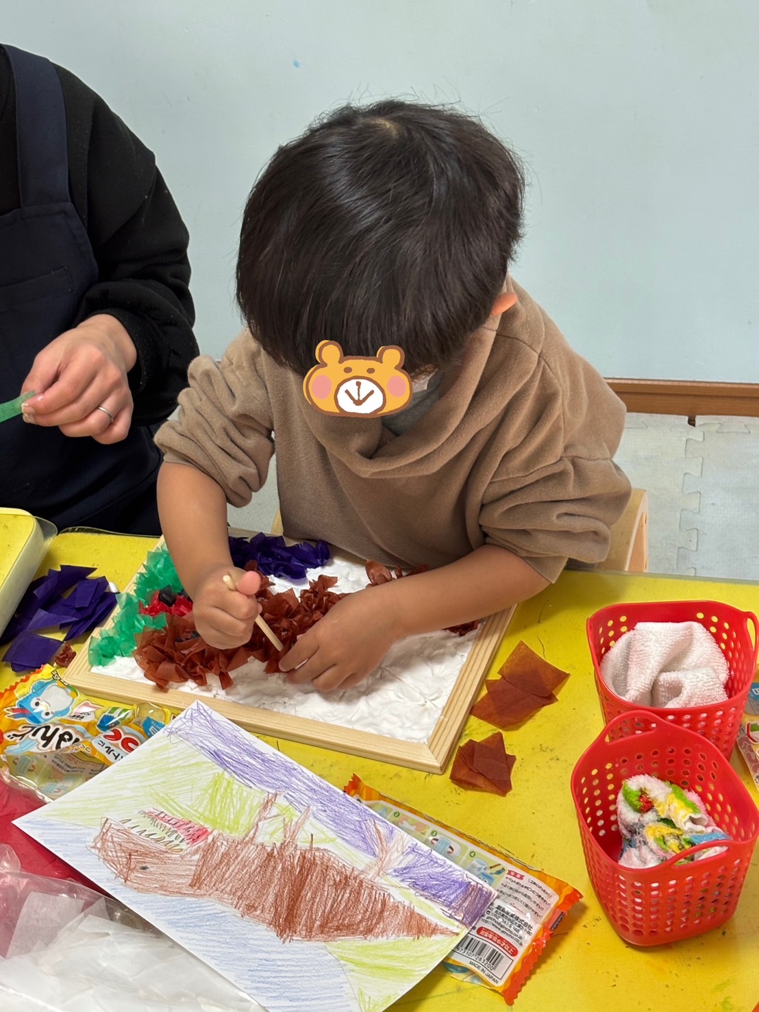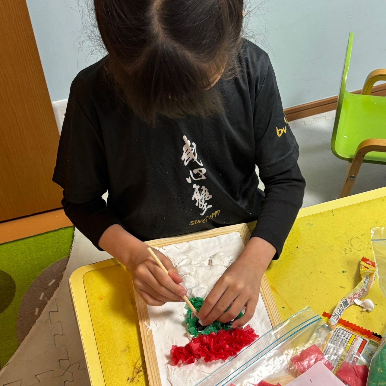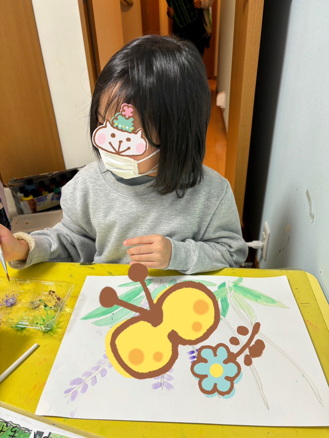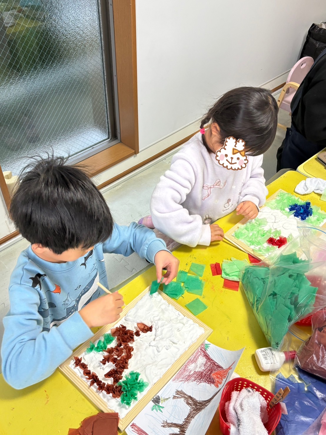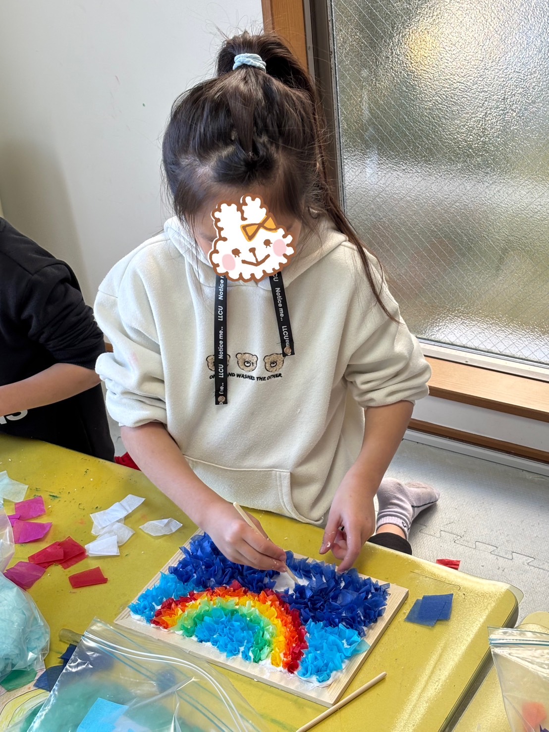用意した花紙の色を見て、どの色を使うのか、しっかり確認しながら色塗りをしたので、作品作りがスムーズに行えました✨