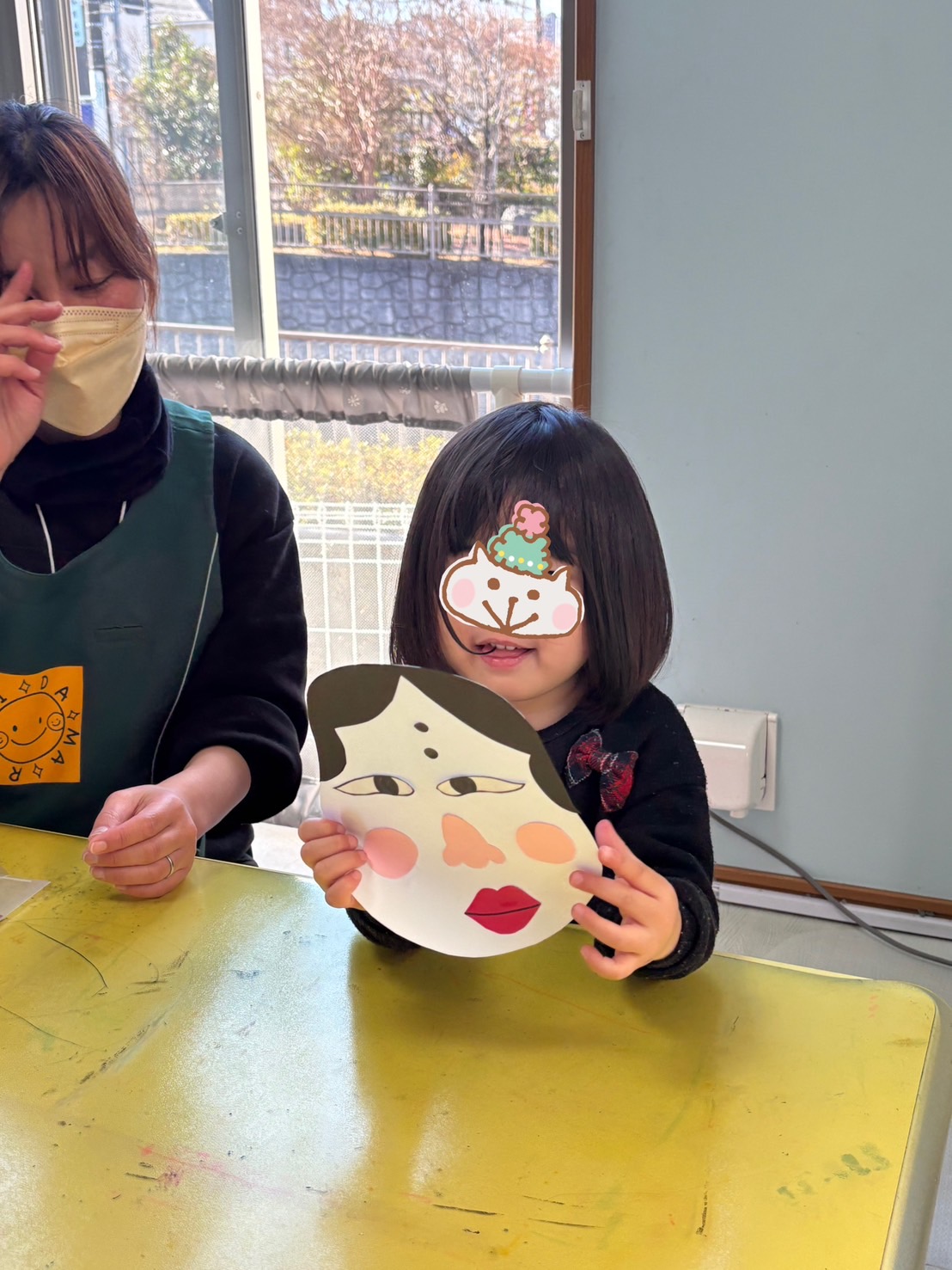 福笑い制作を毎年やっていますが、いまだに子どもたちのお顔の完成に、いつも笑いと元気をもらっています😄