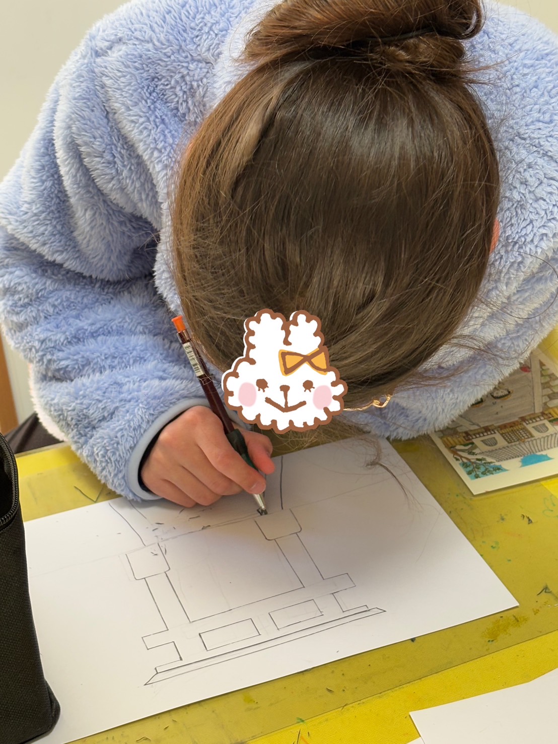 ひとりひとり、テーマが決まって、自分の頭の中のイメージを紙面に描いていく作業が始まりました✨