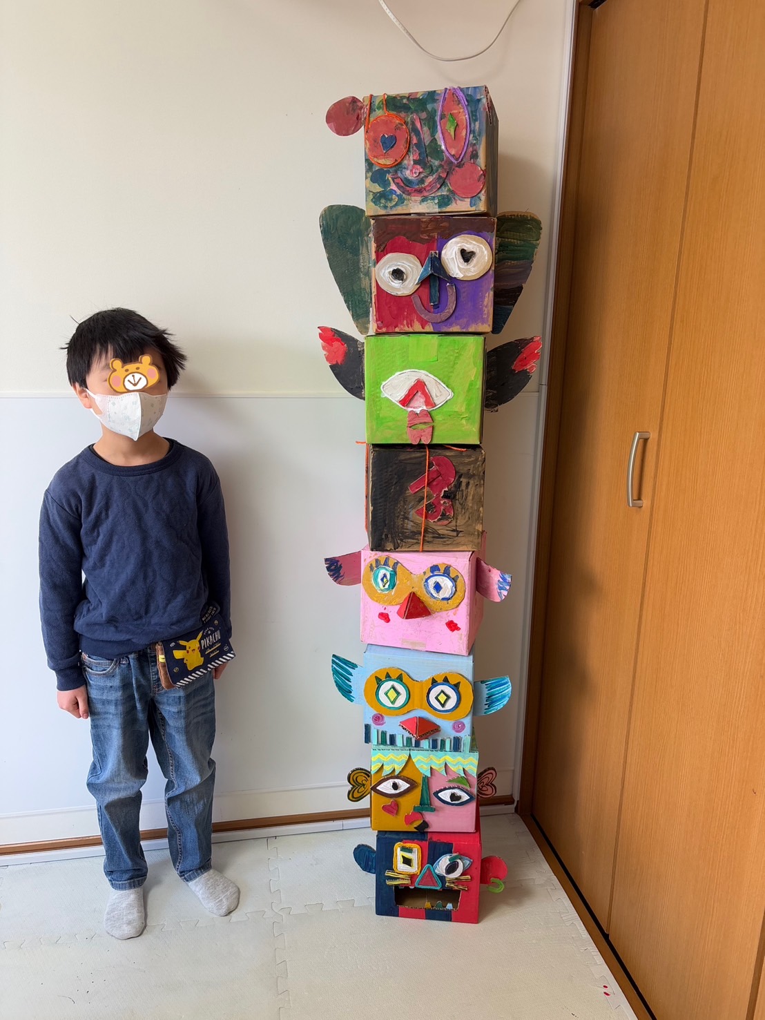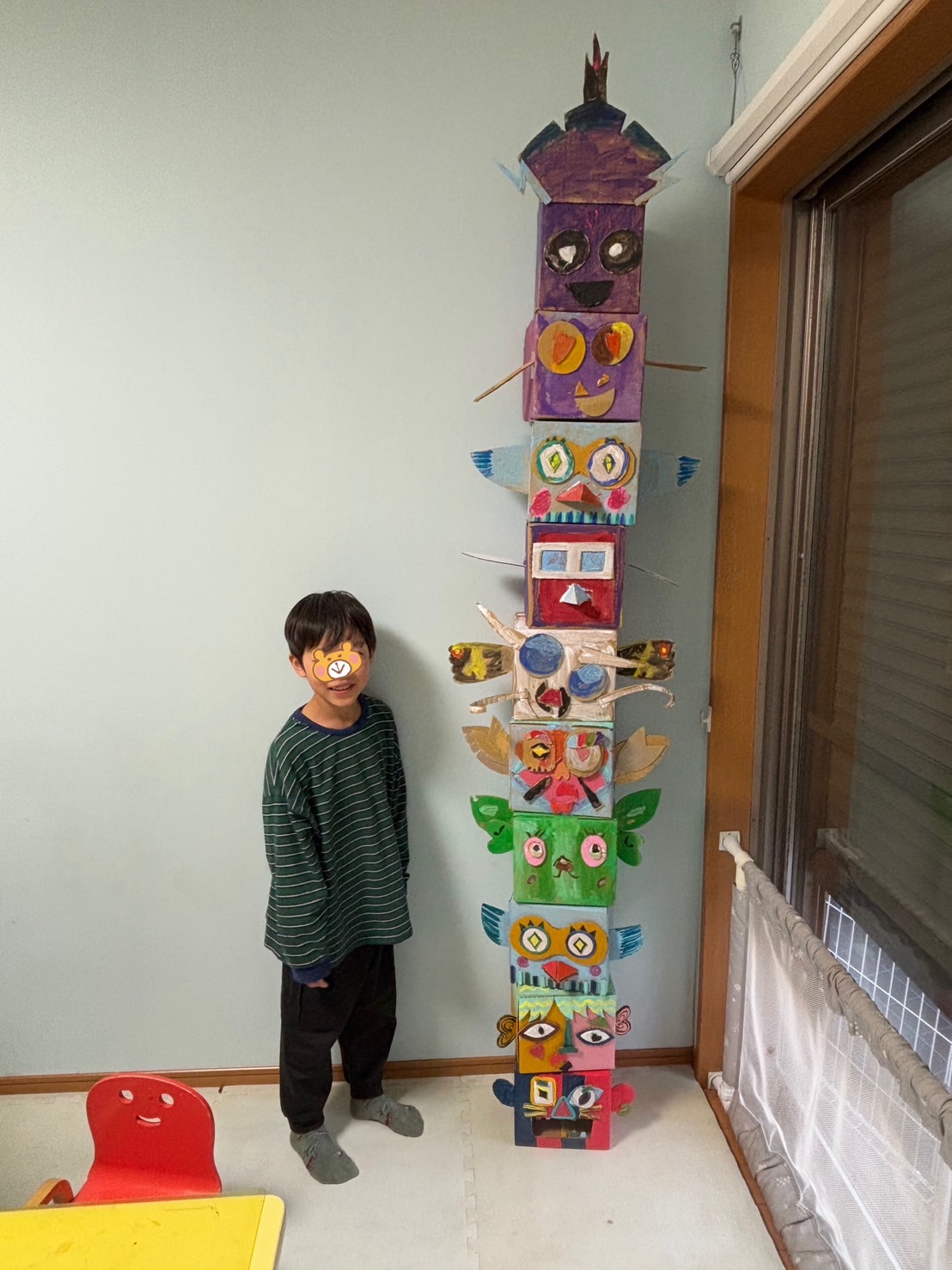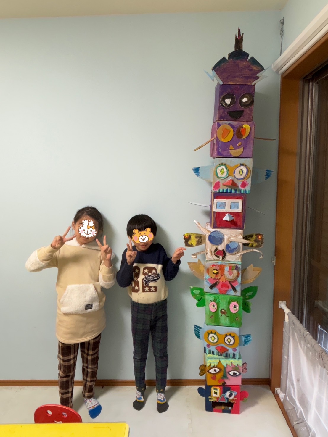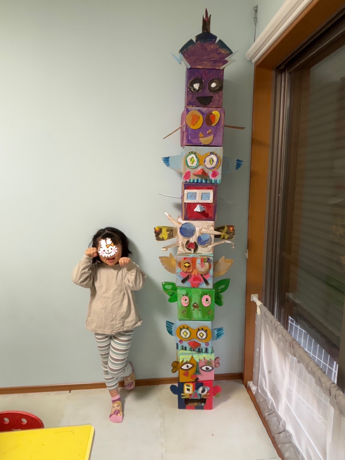お顔を積み上げて、高い高いトーテムポールができたときは、子どもたちもびっくりした様子♪