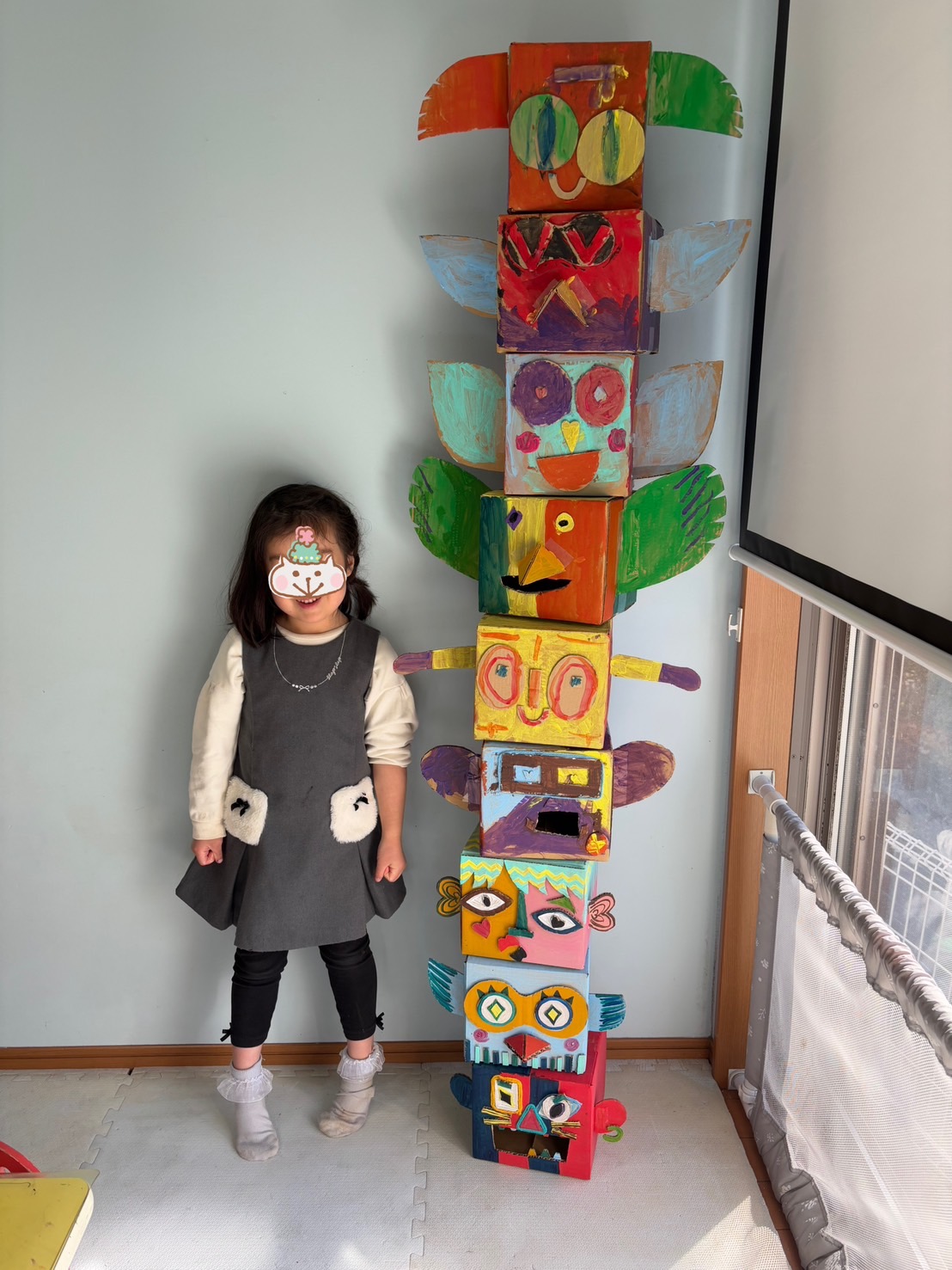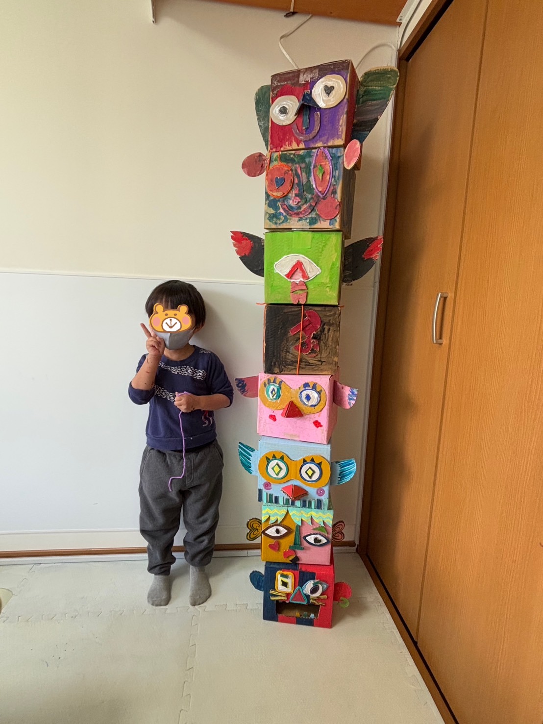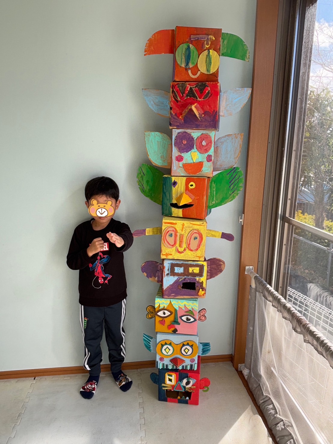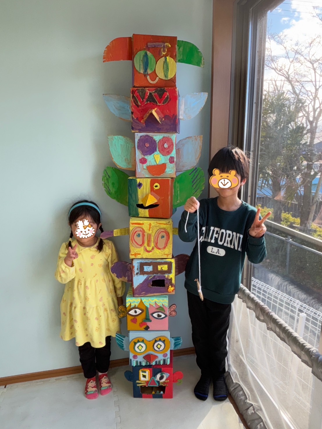 お顔を積み上げて、高い高いトーテムポールができたときは、子どもたちもびっくりした様子♪