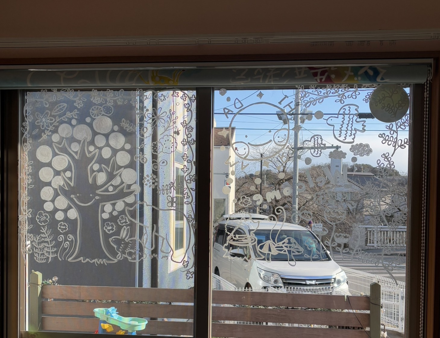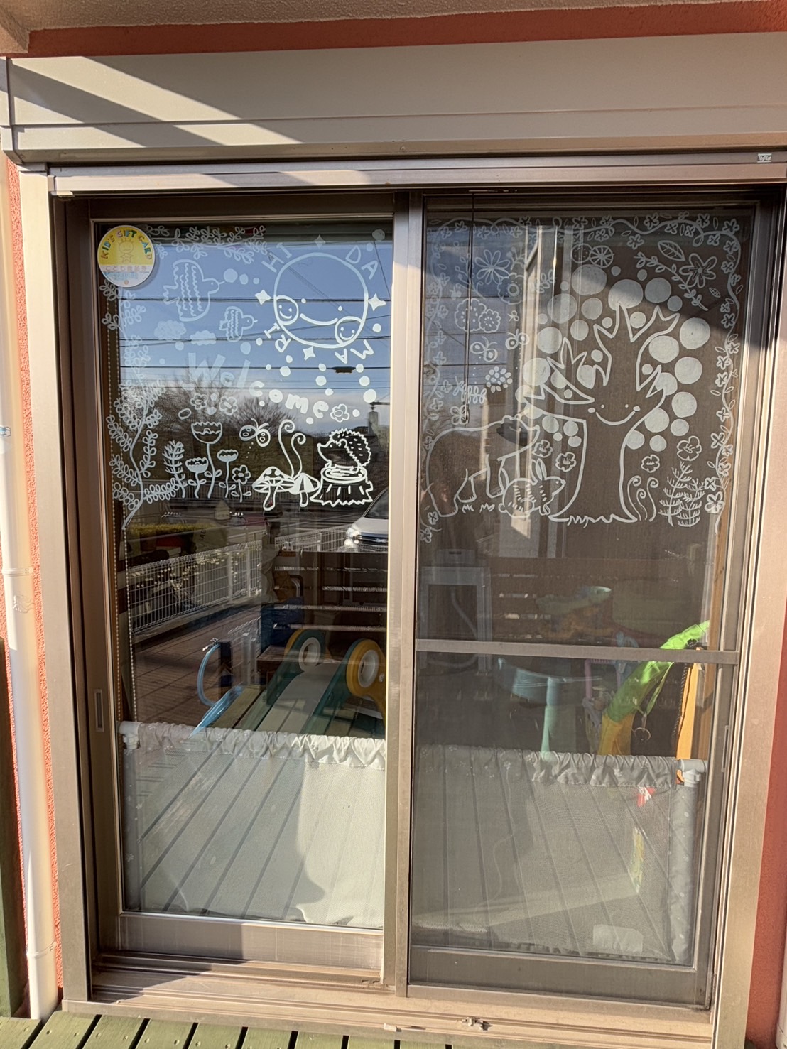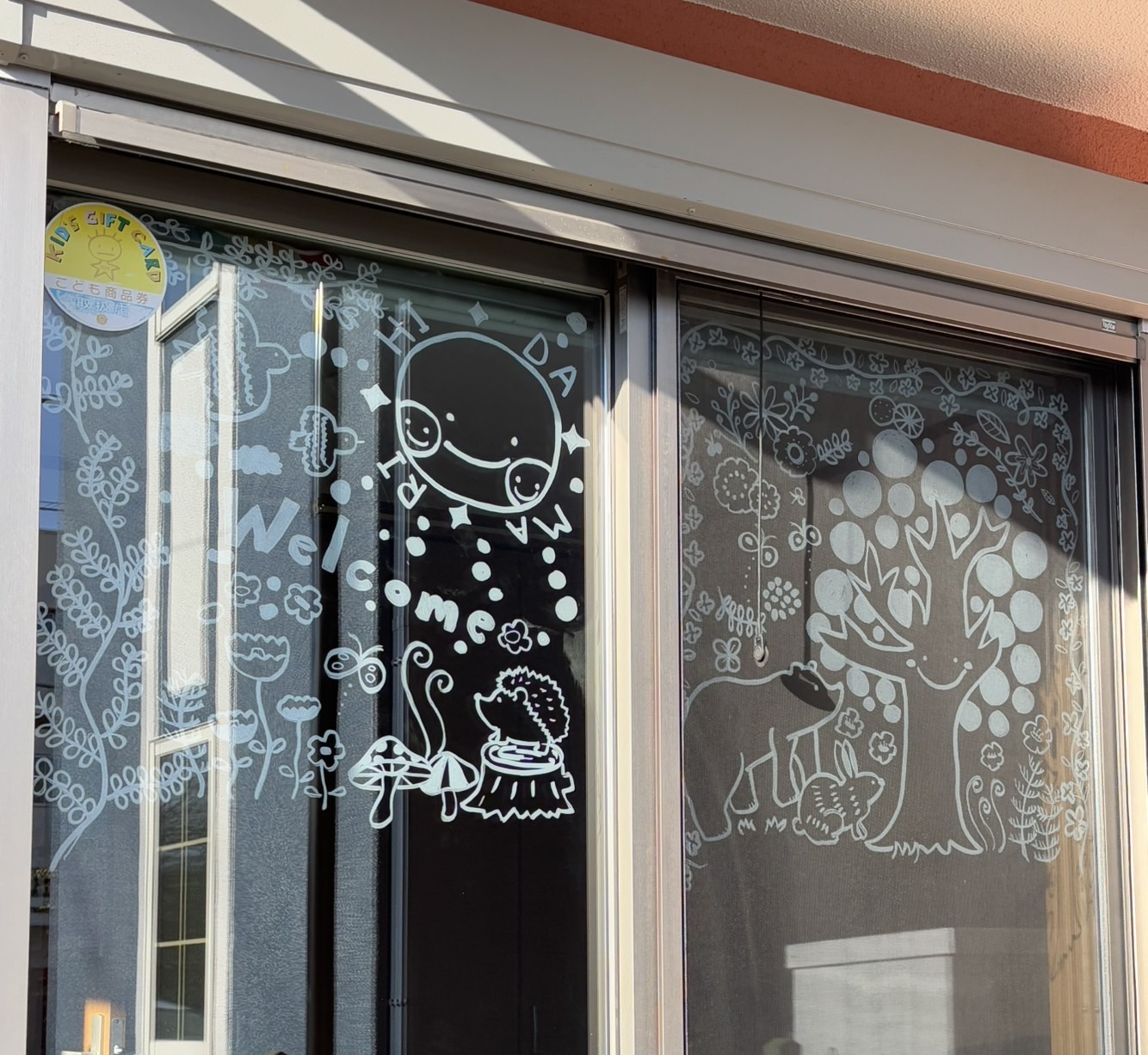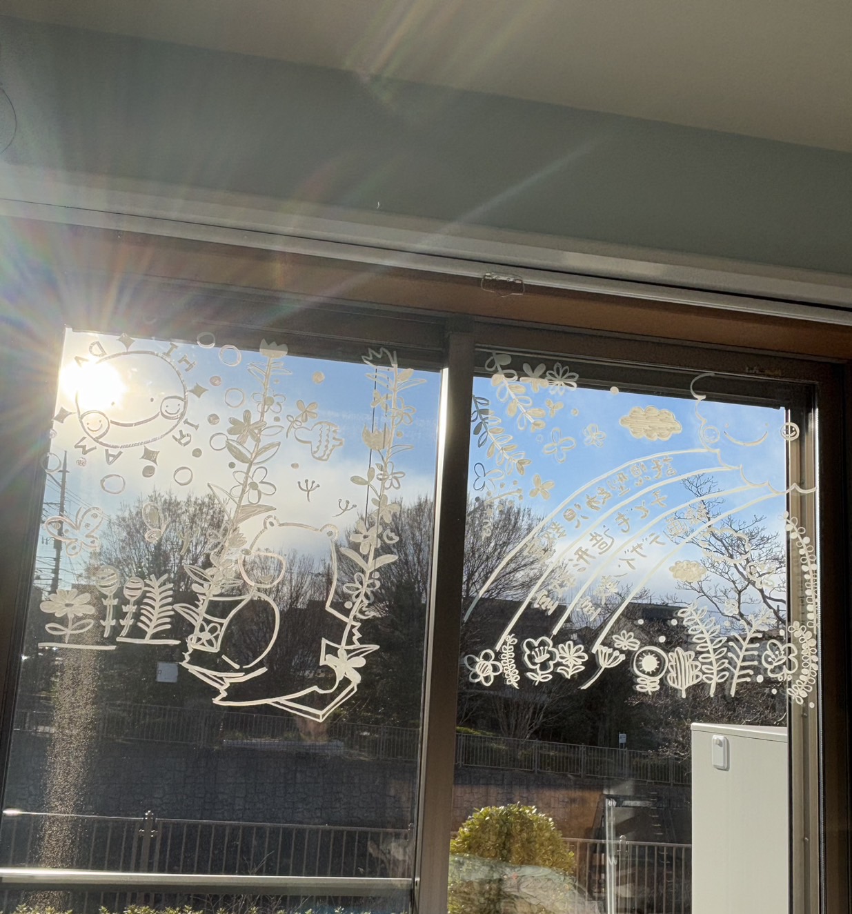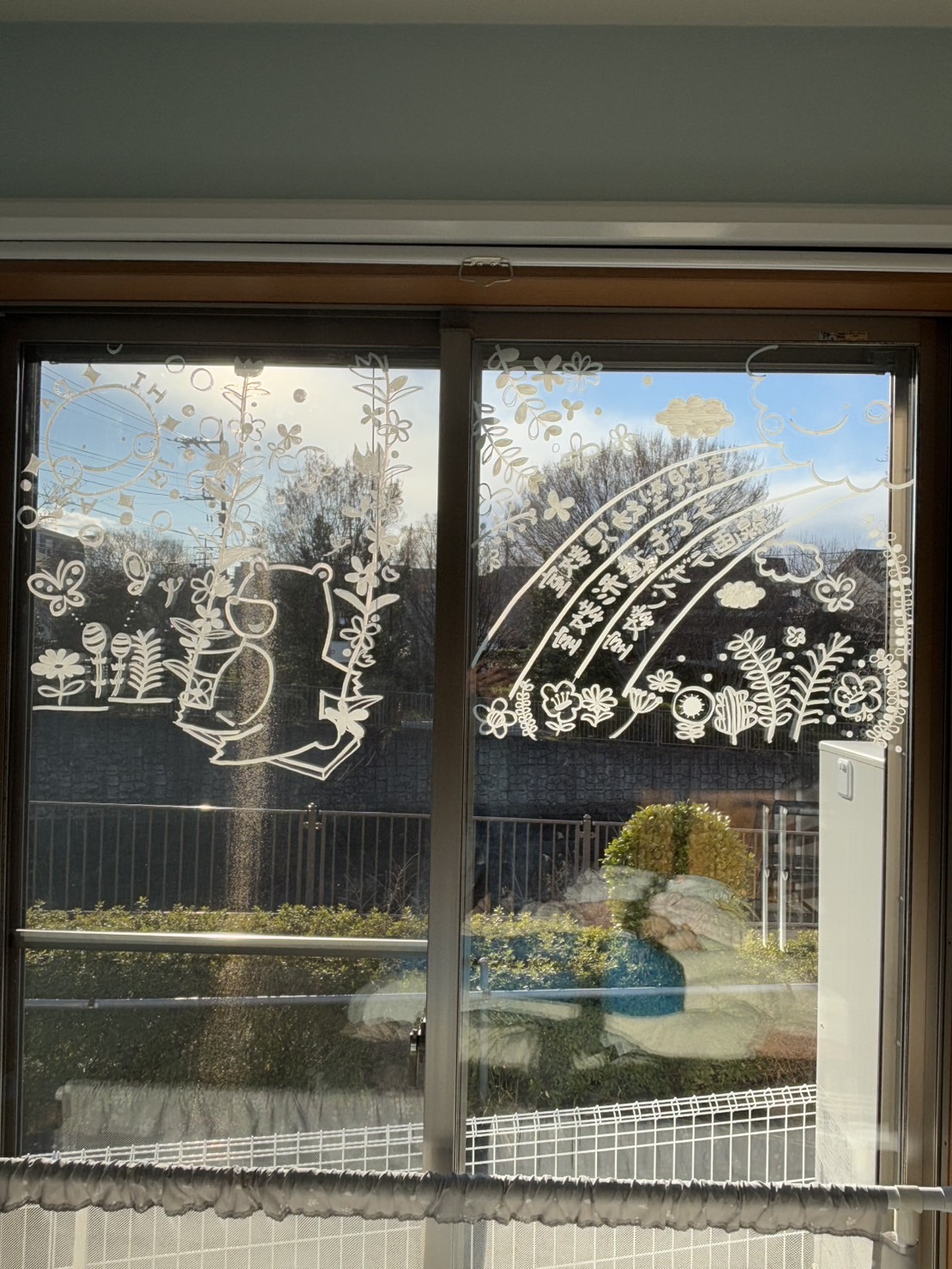 私のお友達がガラスペイントをされていて、前々から気になっていたのですが、ついにひだまりの窓ガラスにもペイントしてもらいました💕