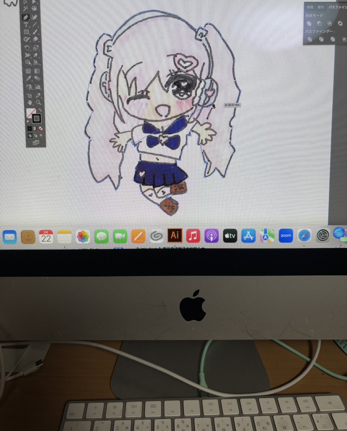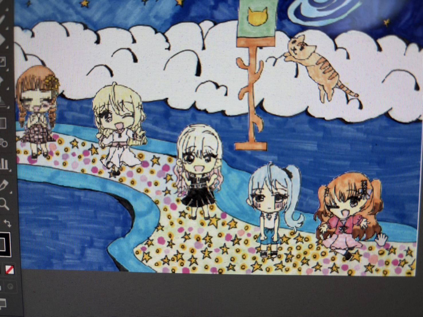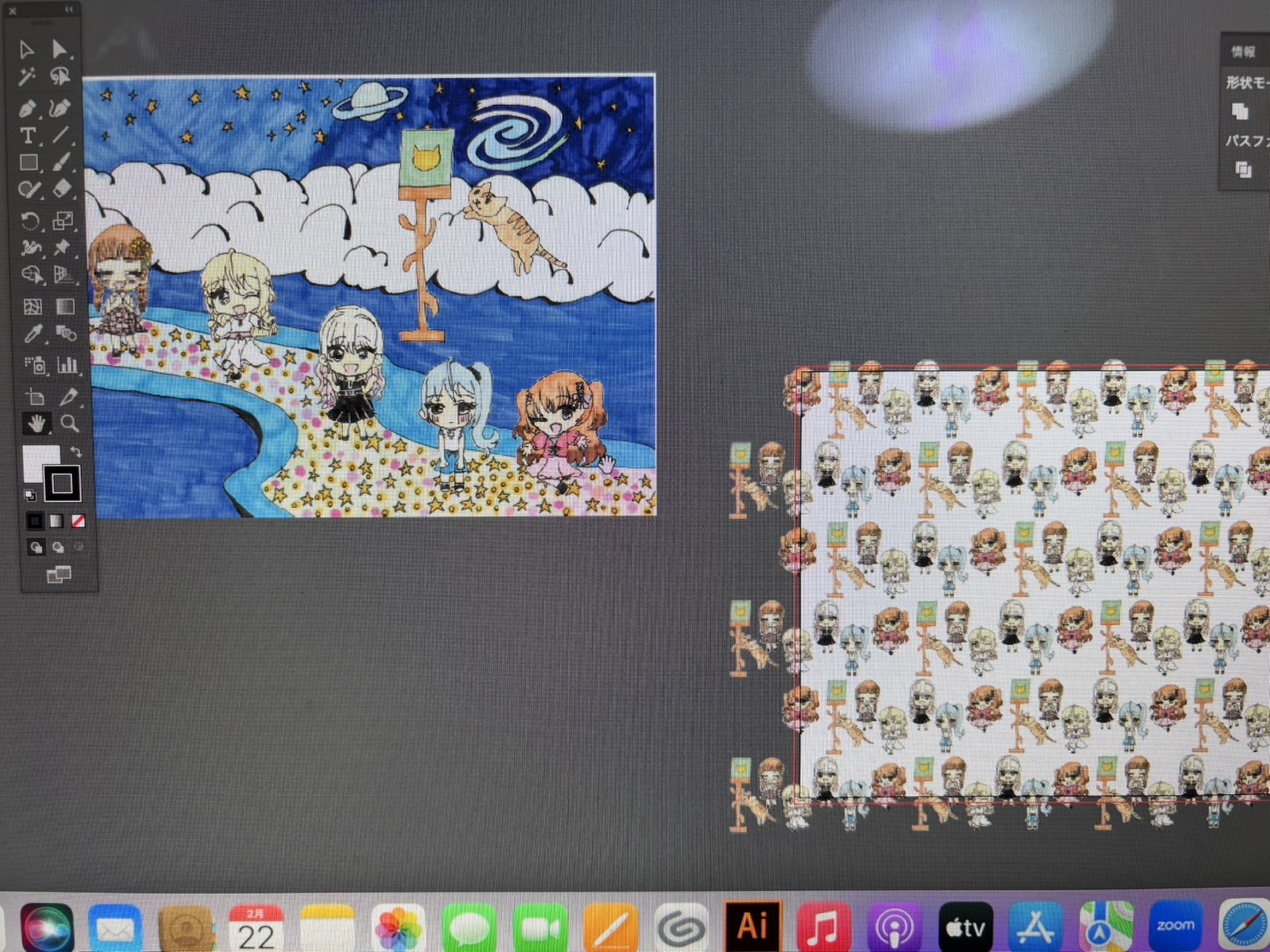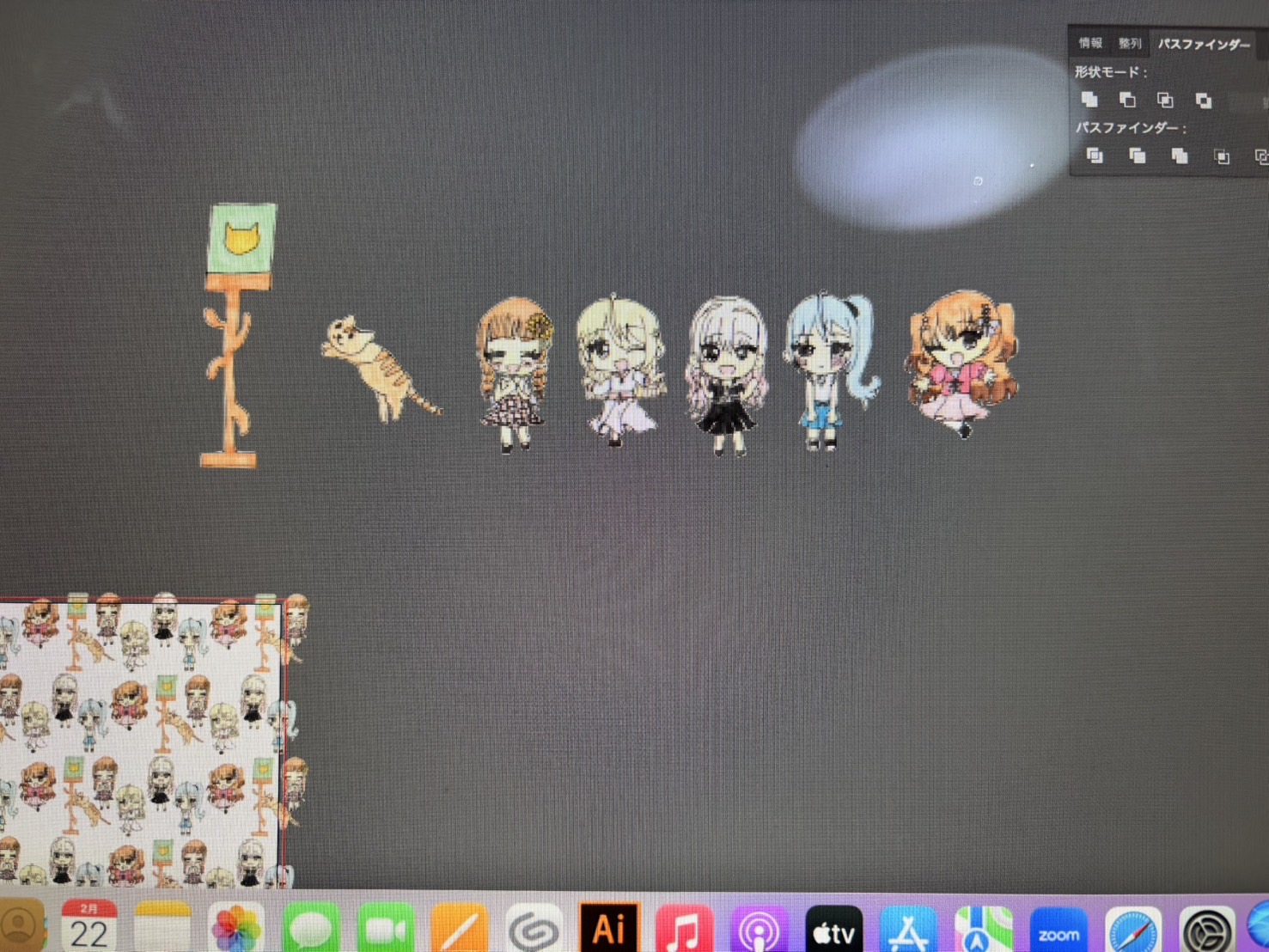 黙々と、みんなが描いたオリジナルキャラと背景を、イラストレーターで編集中。。