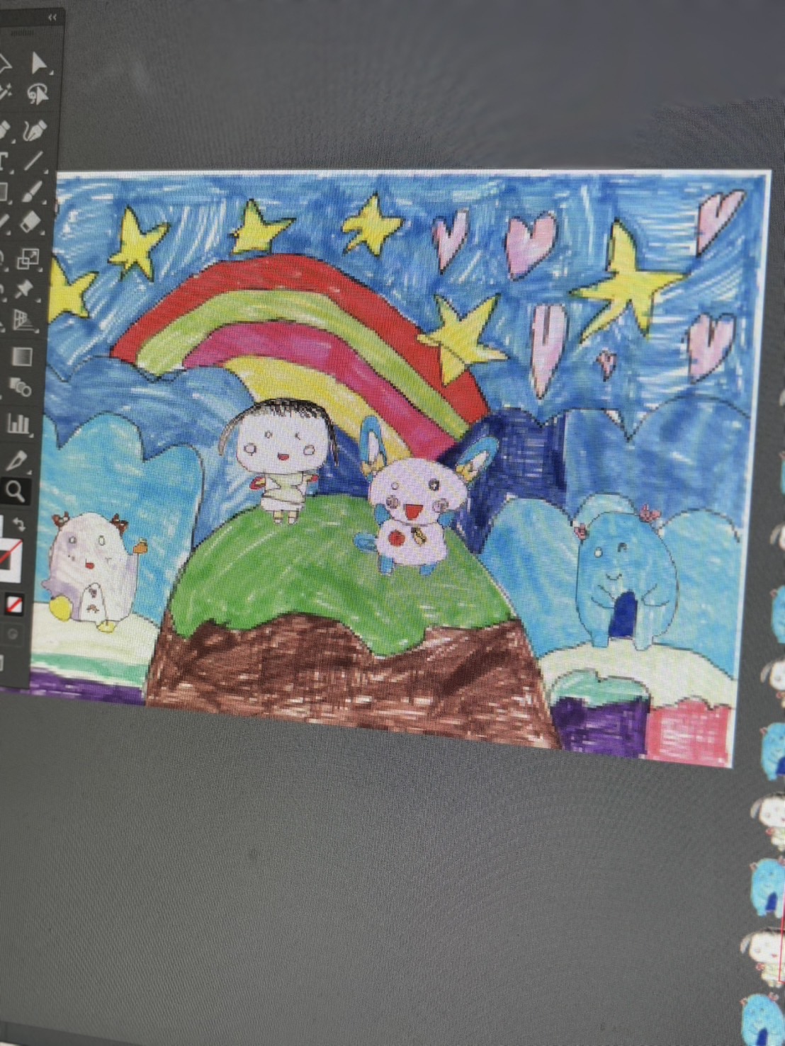 子どもたちが、この絵を見ながら、さらにウキウキ楽しい気持ちになって、笑顔いっぱいの教室時間になるといいなー♪