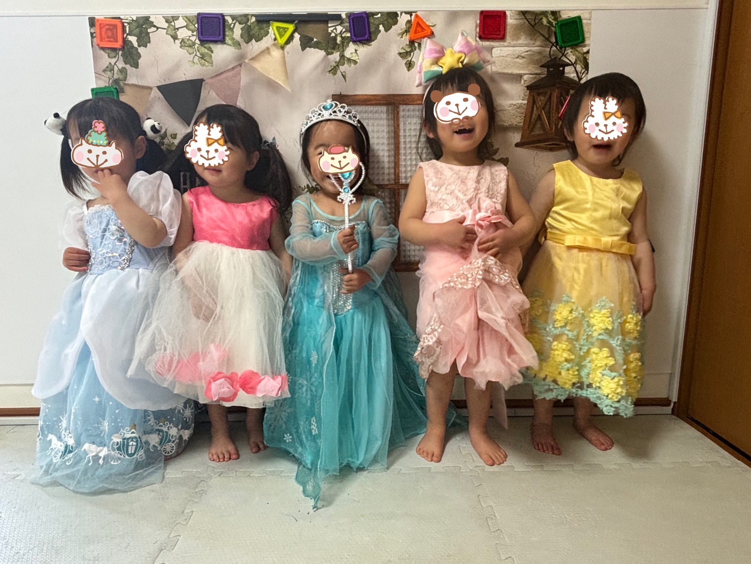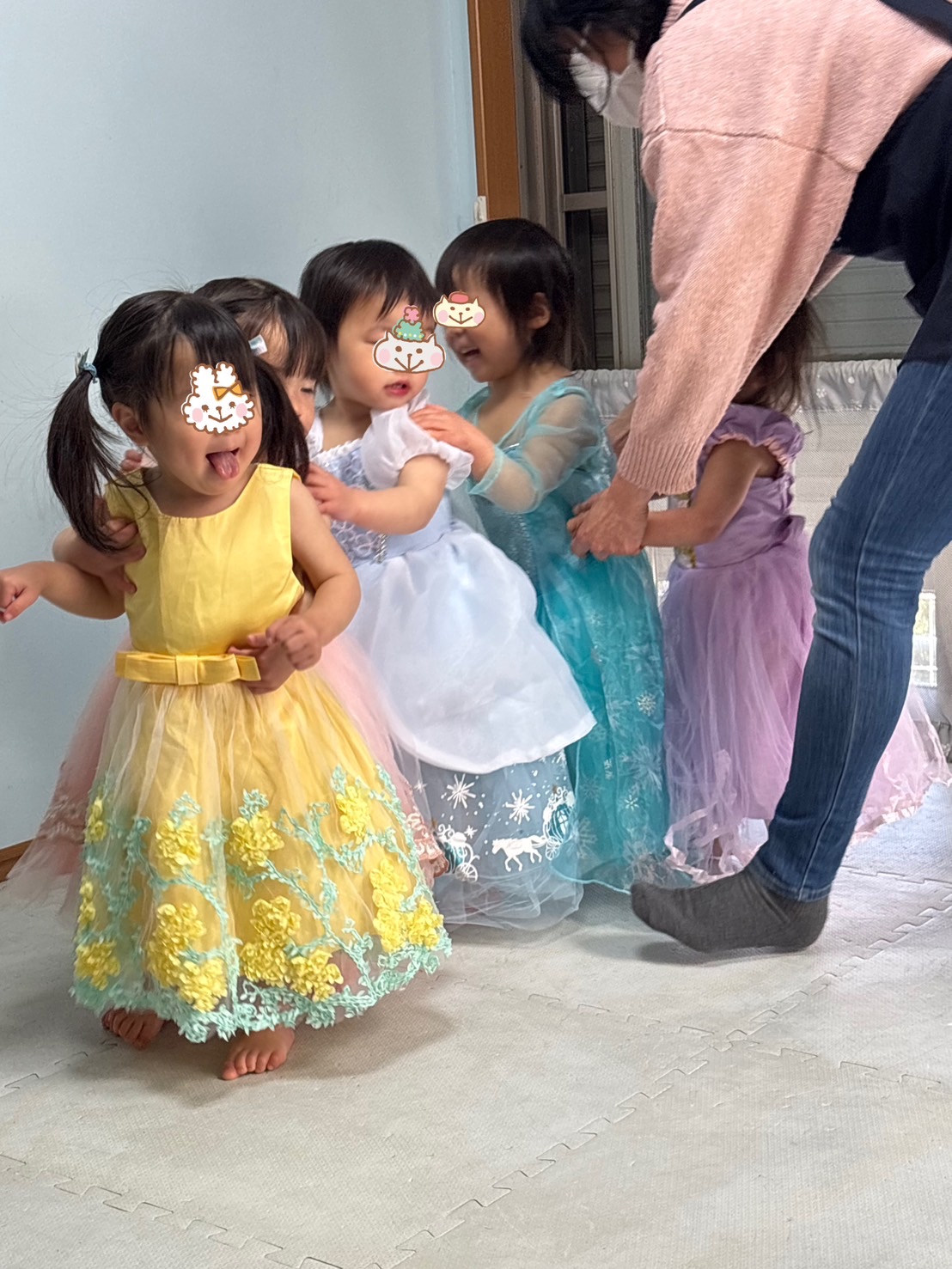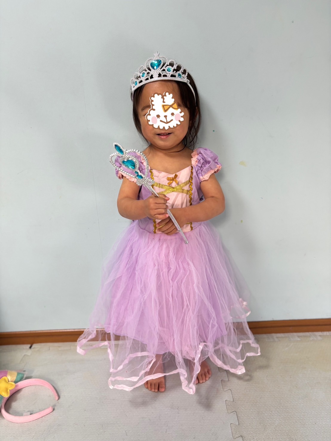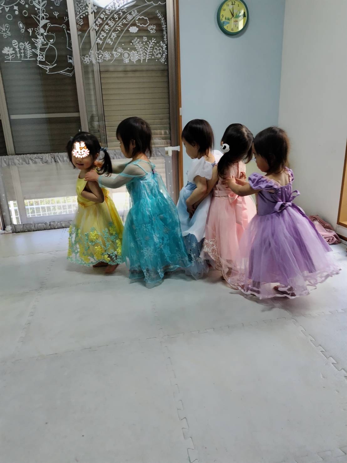 女の子だけのお預かりの日があったので、久しぶりに幼児教室卒園生の保護者さまたちからもらった可愛いドレスを着て、プリンセスに大変身♪