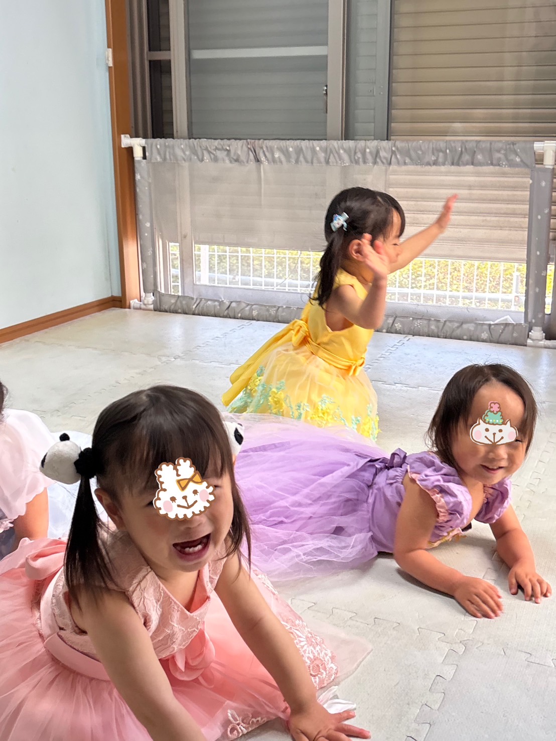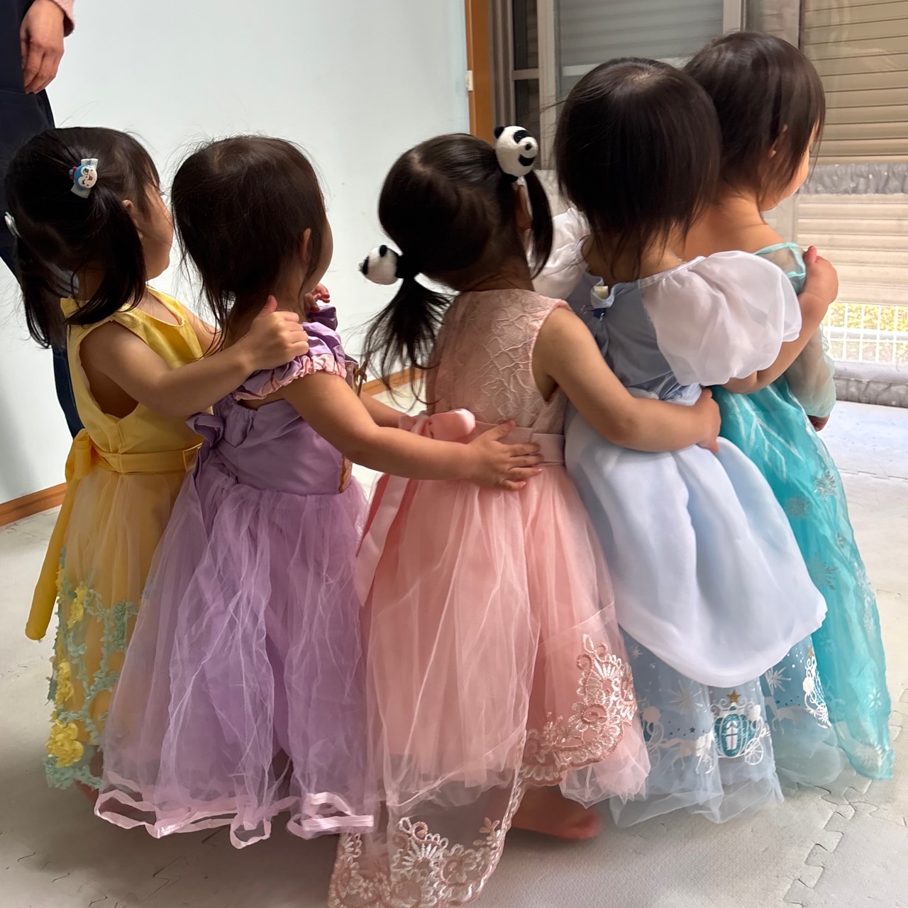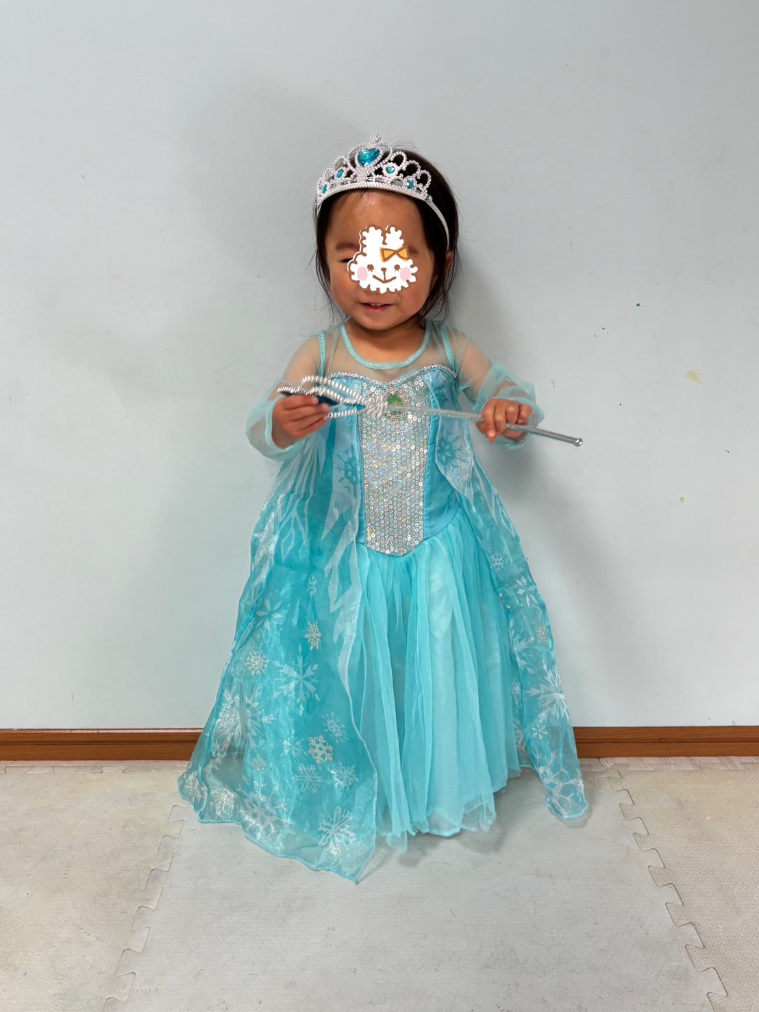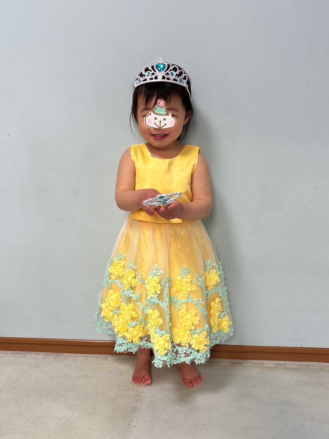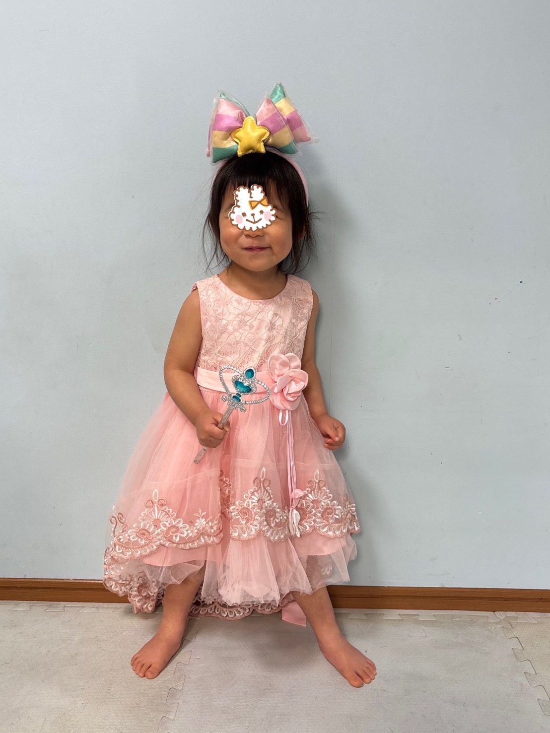 女の子だけのお預かりの日があったので、久しぶりに幼児教室卒園生の保護者さまたちからもらった可愛いドレスを着て、プリンセスに大変身♪