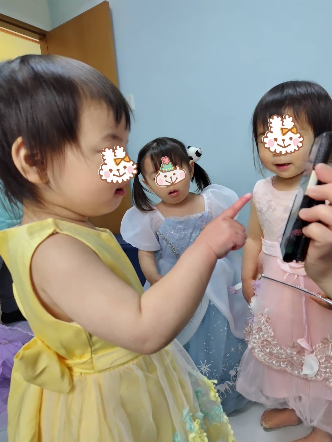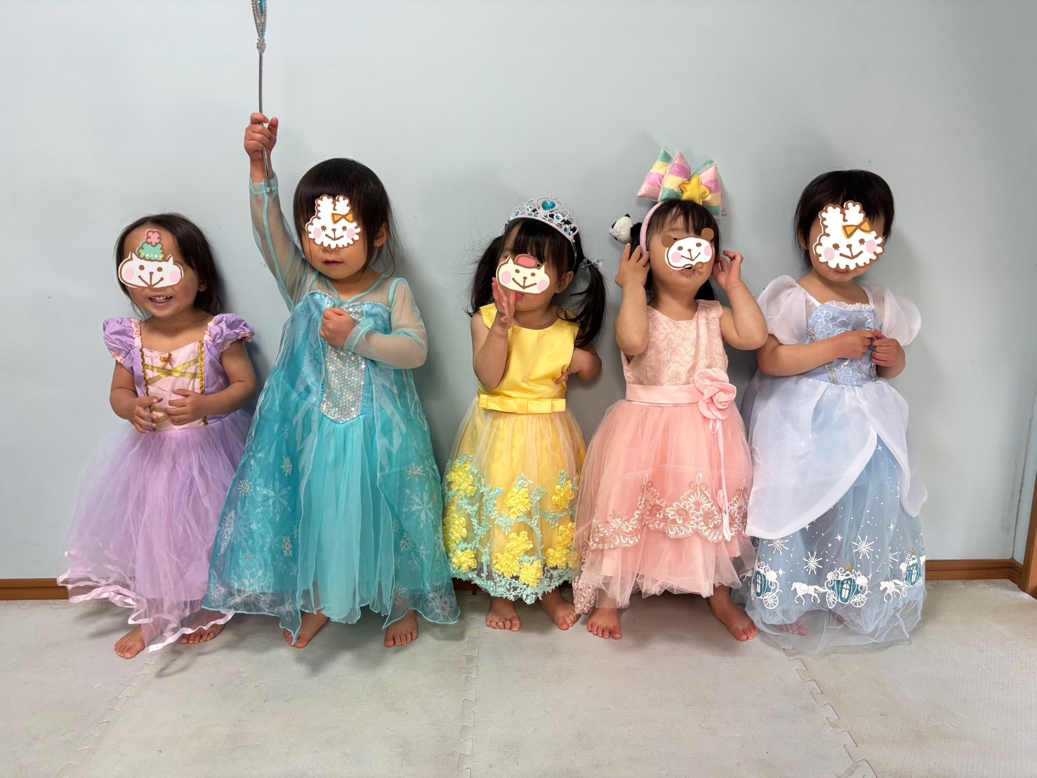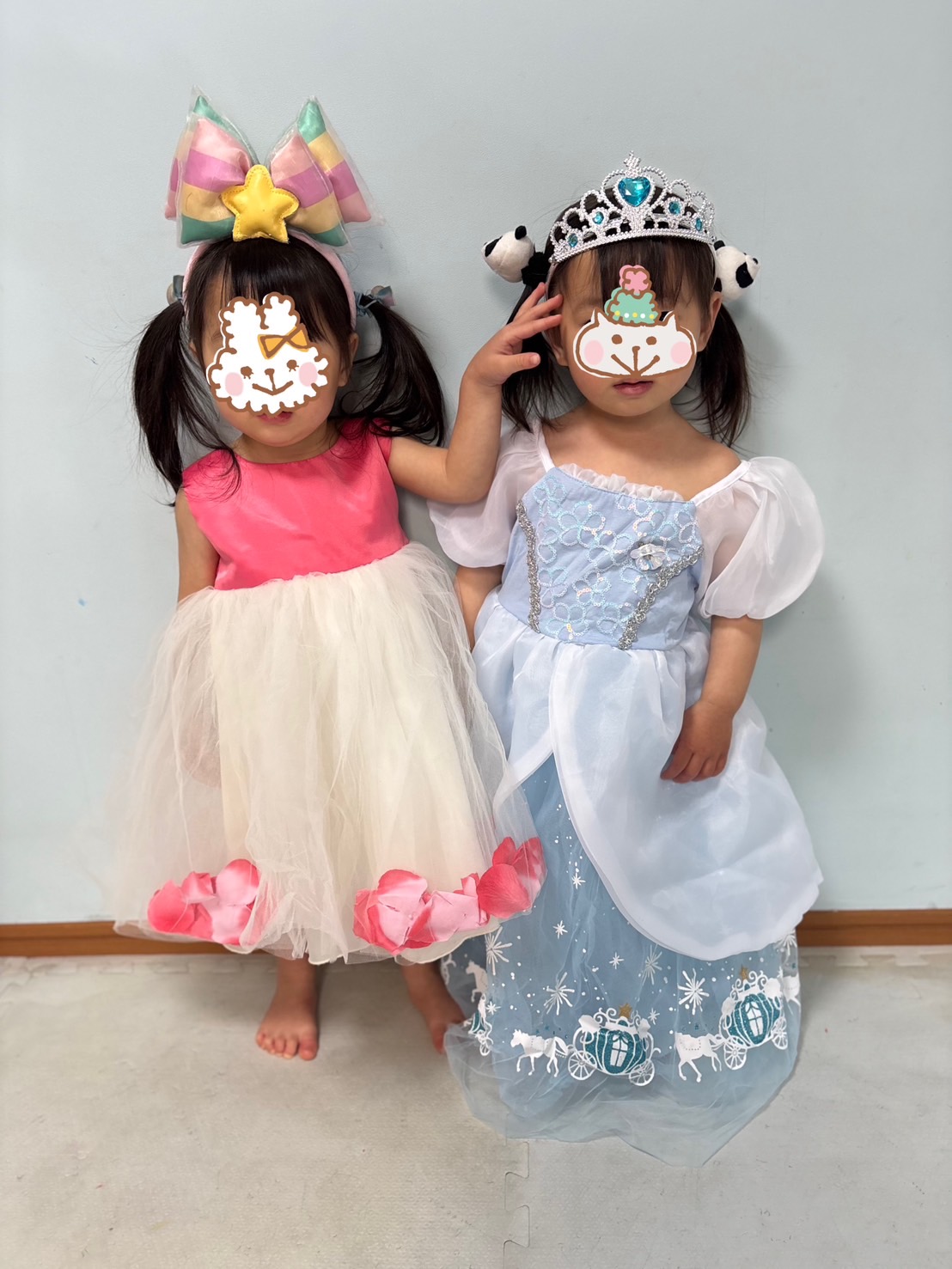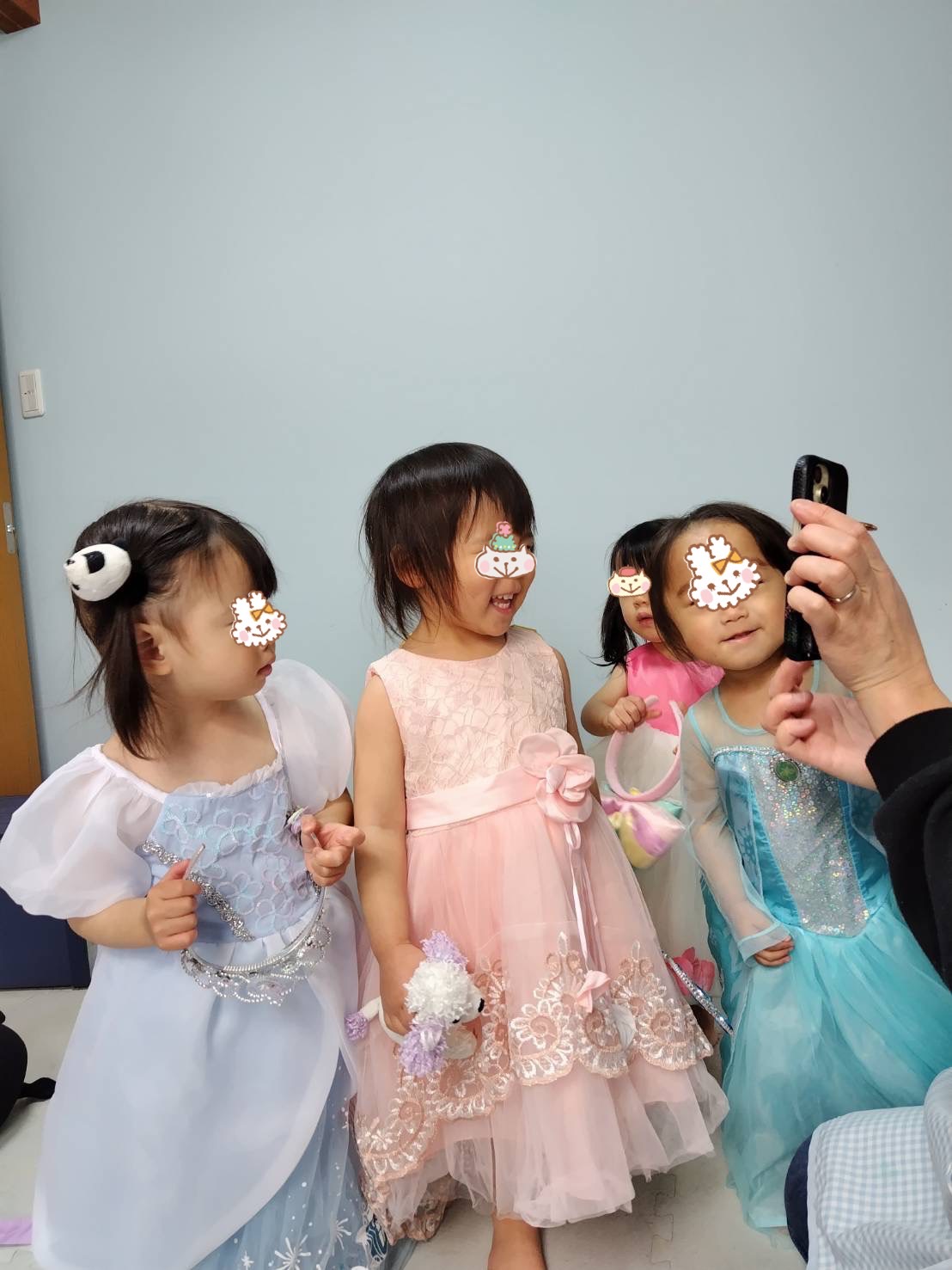 女の子だけのお預かりの日があったので、久しぶりに幼児教室卒園生の保護者さまたちからもらった可愛いドレスを着て、プリンセスに大変身♪