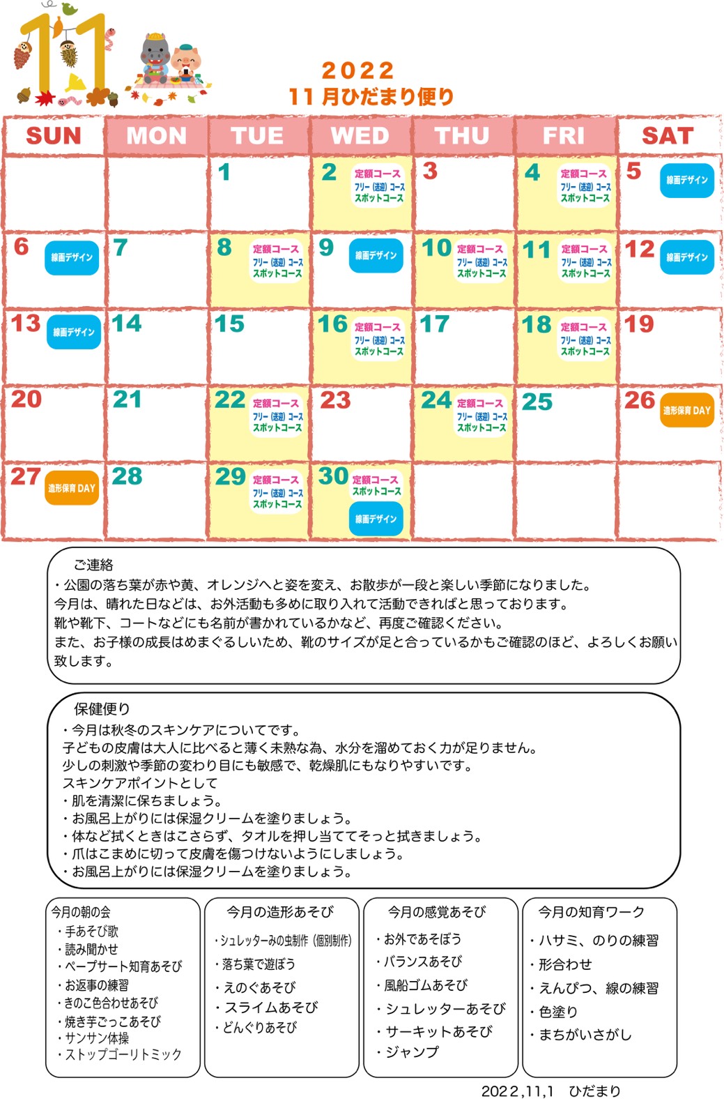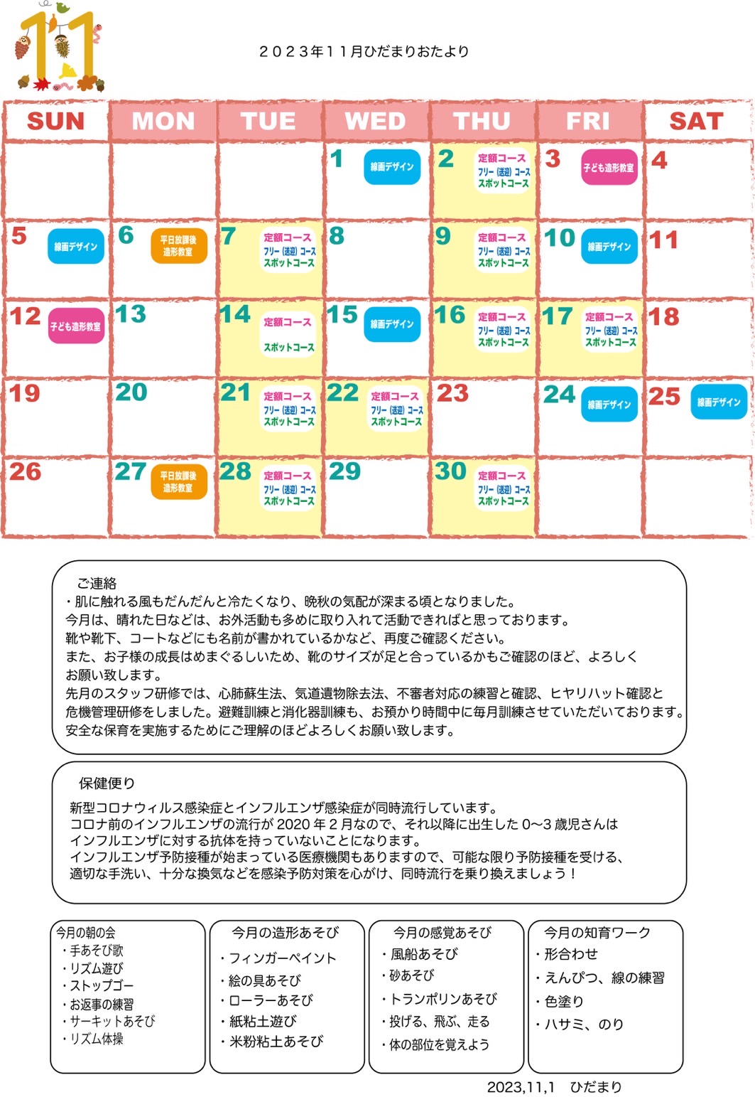 2025年11月のひだまり託児型幼児教室お便り更新しました。
