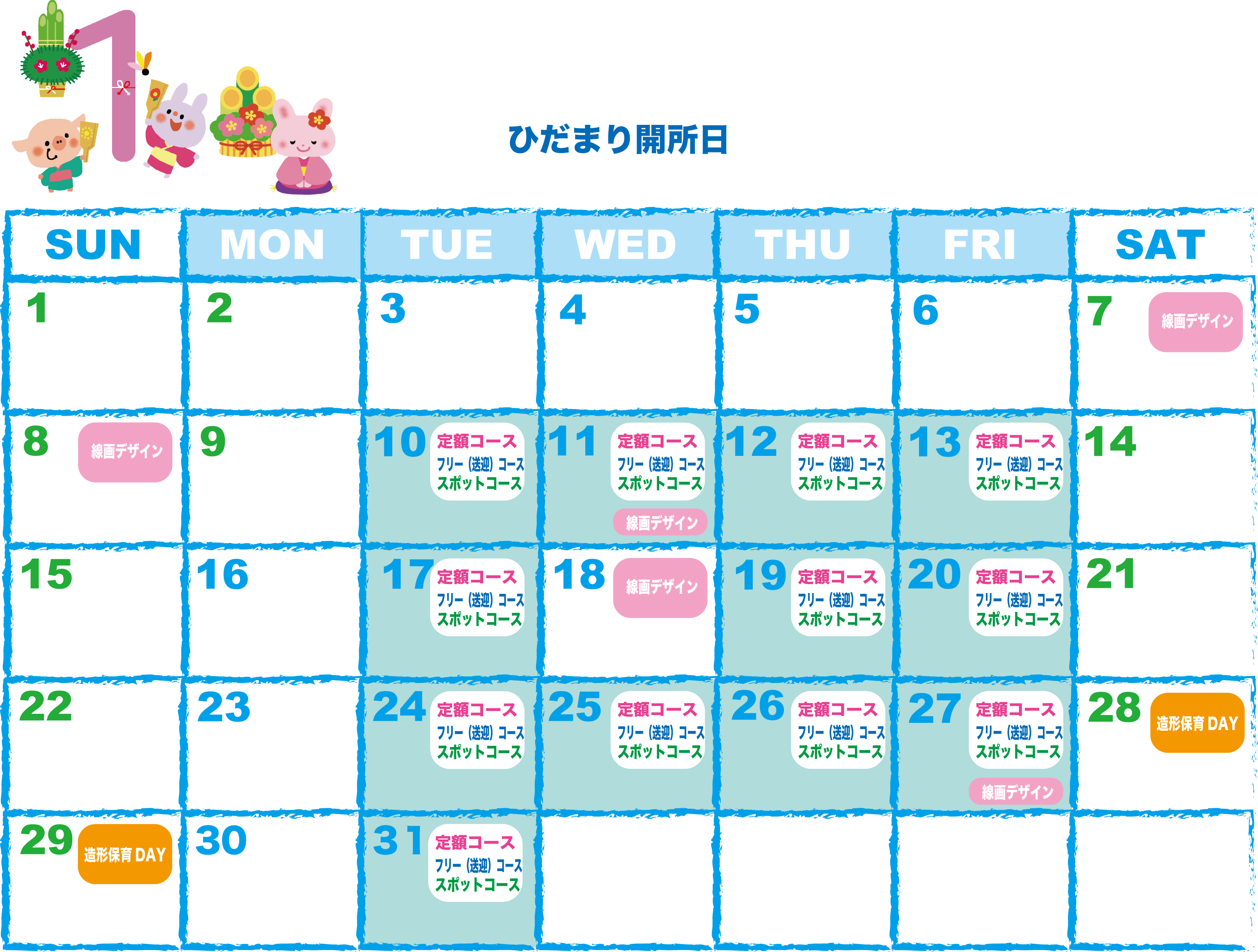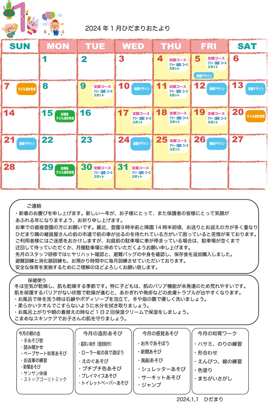 2024年1月のひだまり託児型幼児教室お便り更新しました。