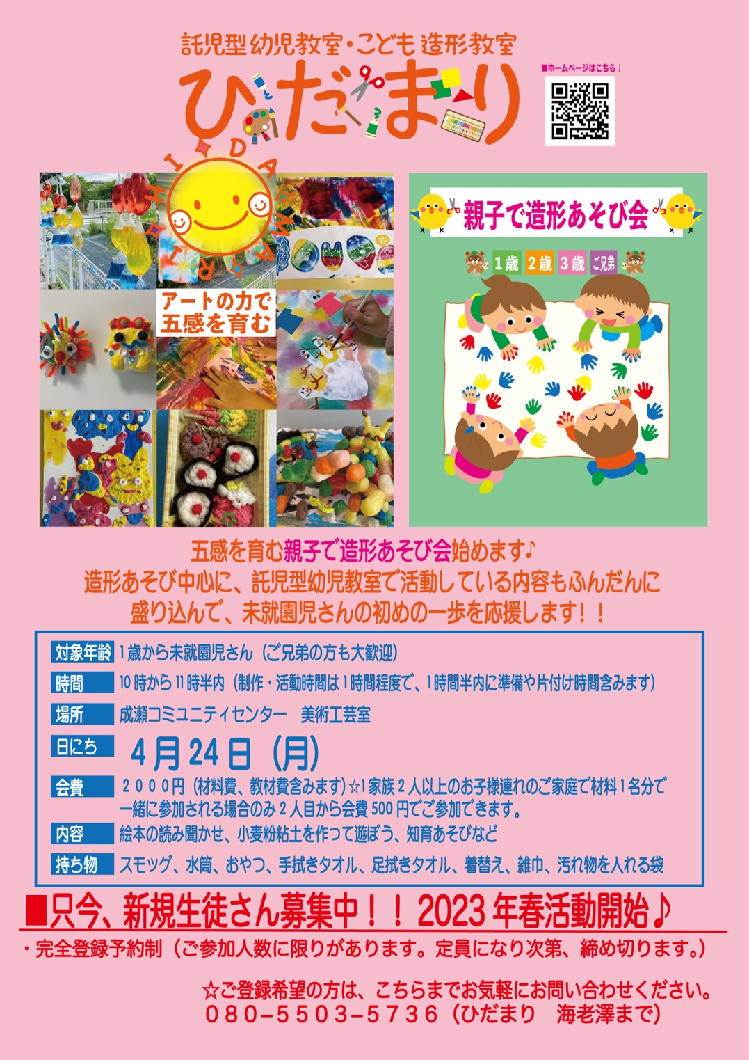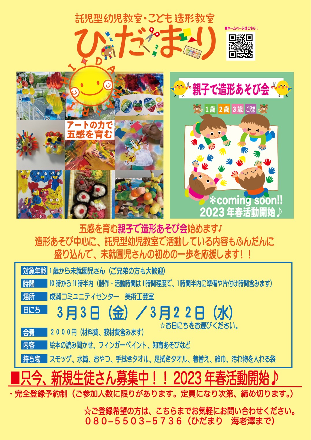 そこで。。4月も3月に引き続き、成瀬コミュニティセンターで未就園児さん対象の親子参加型の造形あそび会を開催します✨