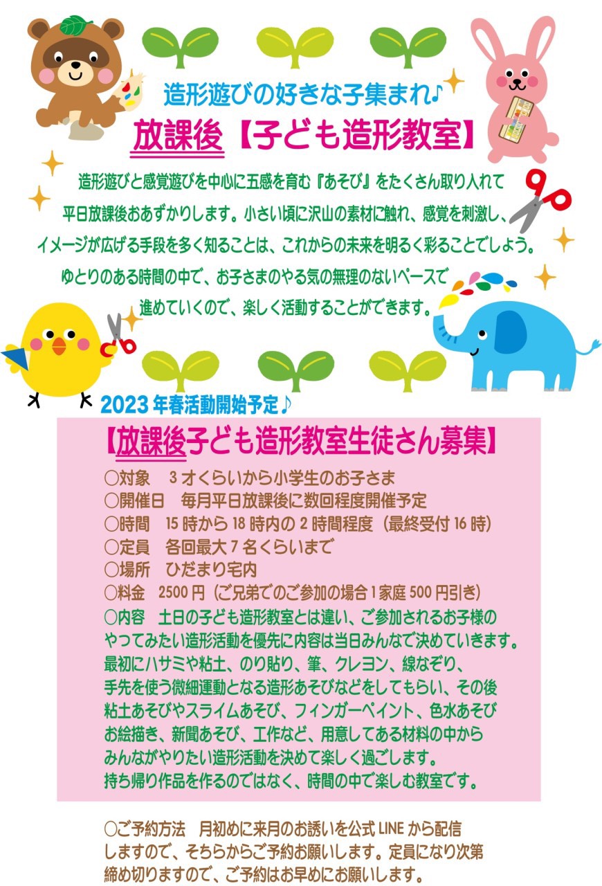 さて、今日は子ども造形教室の新しい活動のお誘いです😊