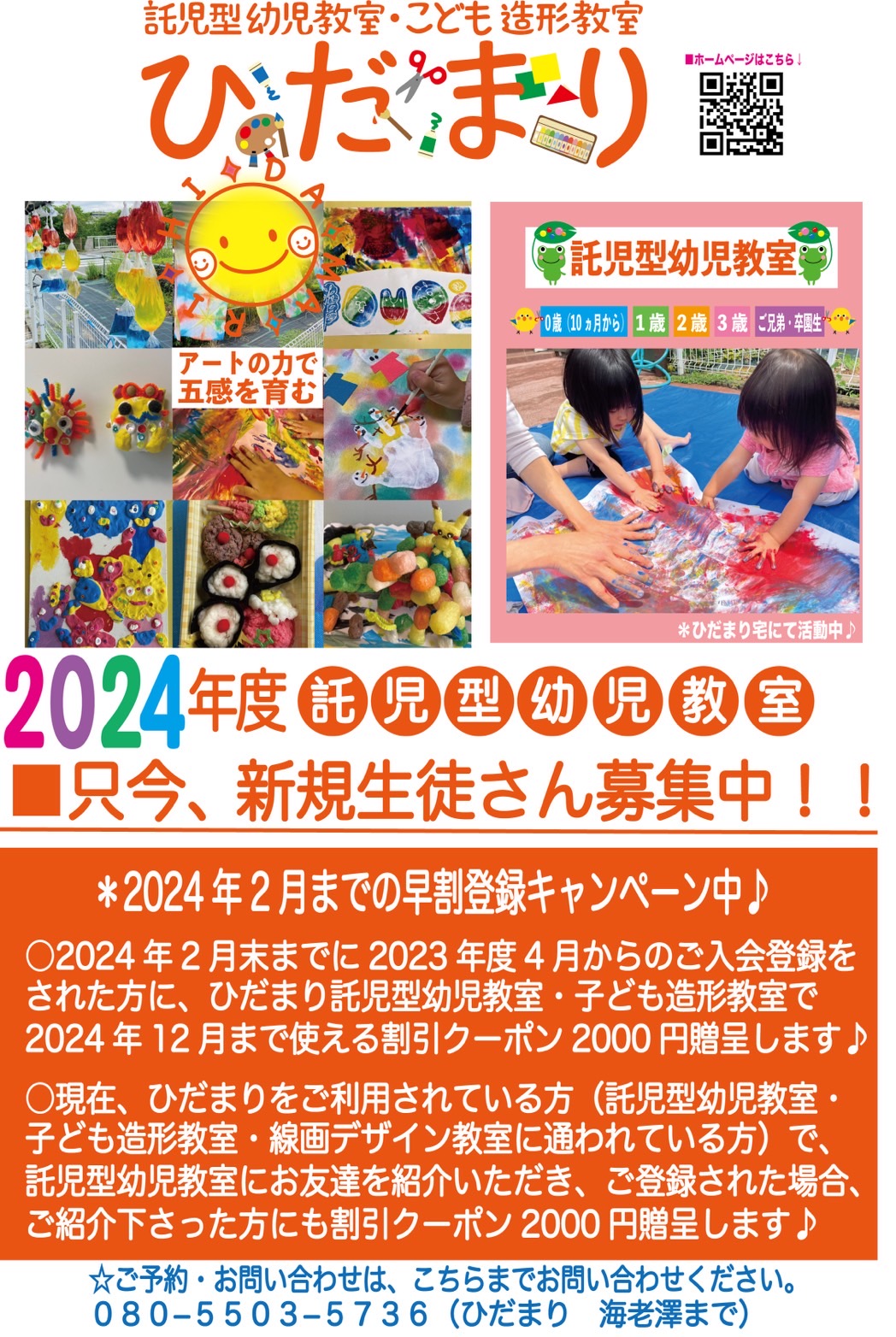 新年度2024年4月からの託児型幼児教室新規生徒さん募集します✨