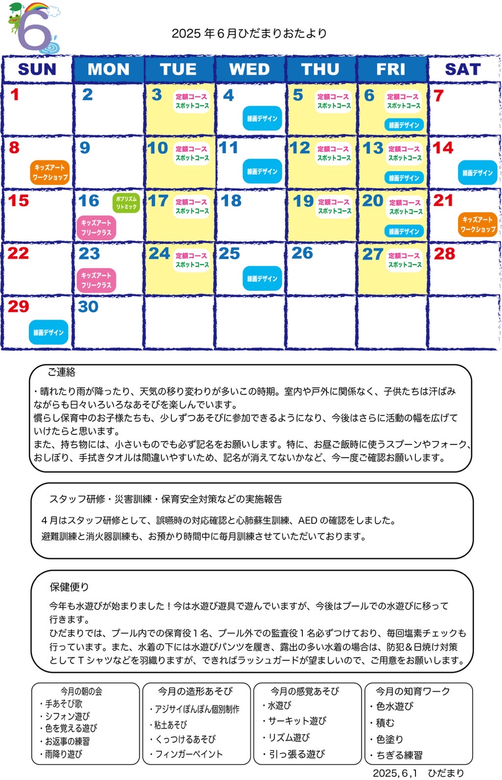 2025年6月のひだまり託児型幼児教室お便り更新しました。