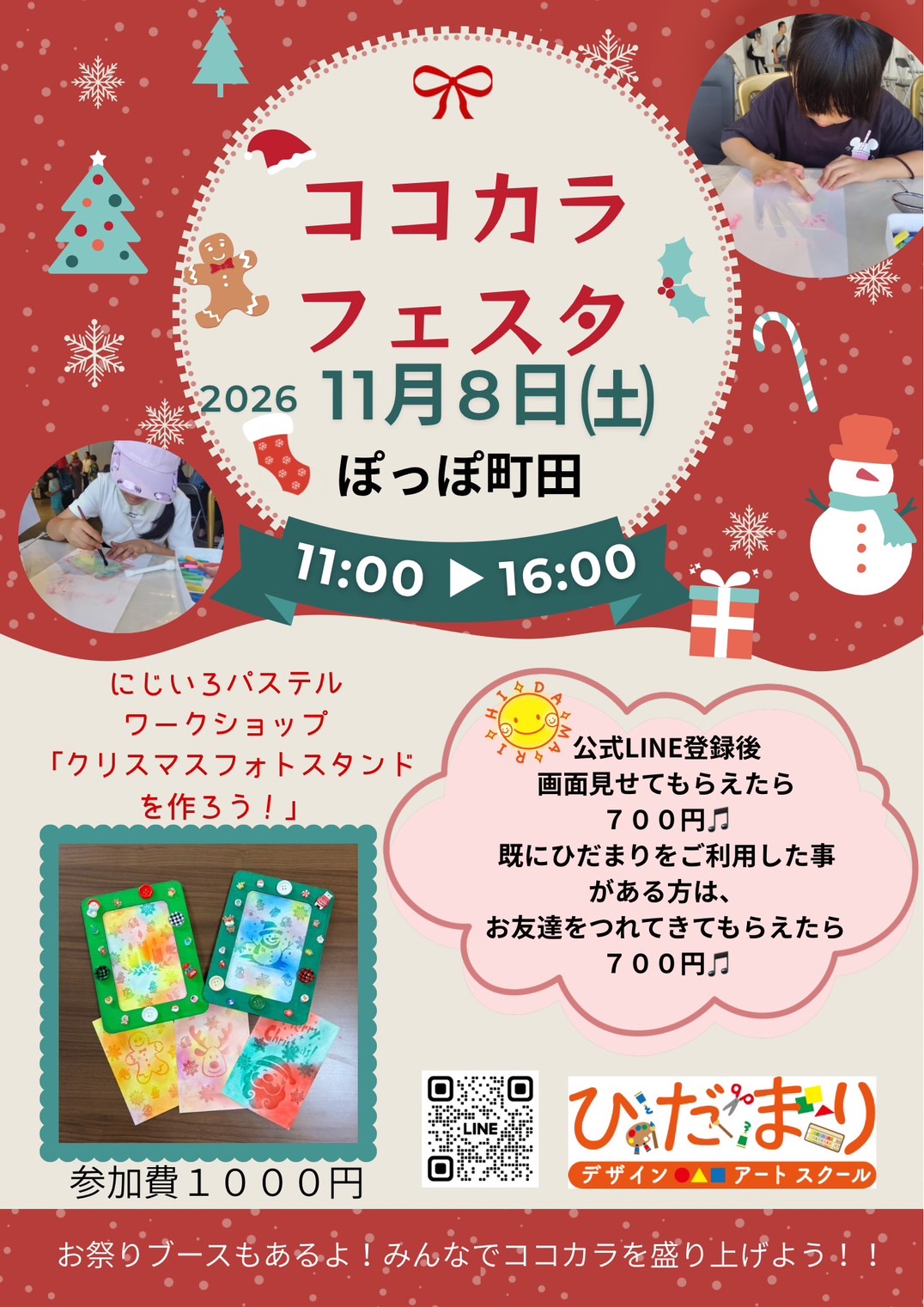 11月8日に開催予定のココカラフェスに、ひだまりもワークショップ参加させていただきます✨
