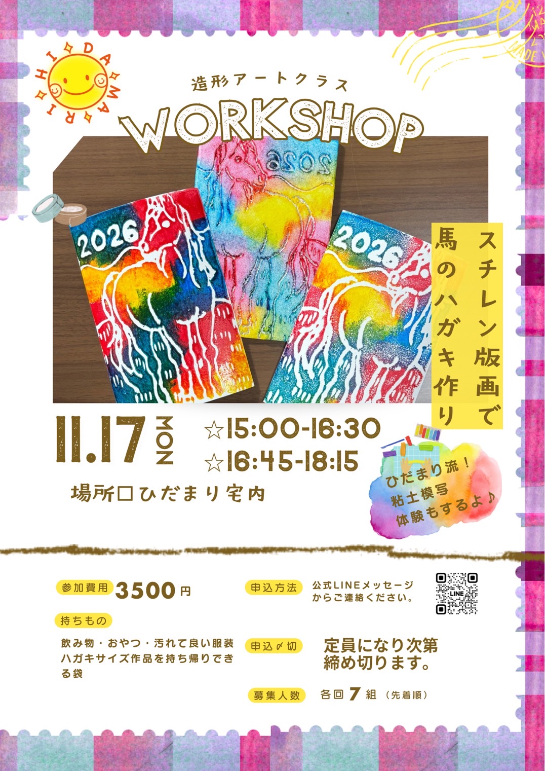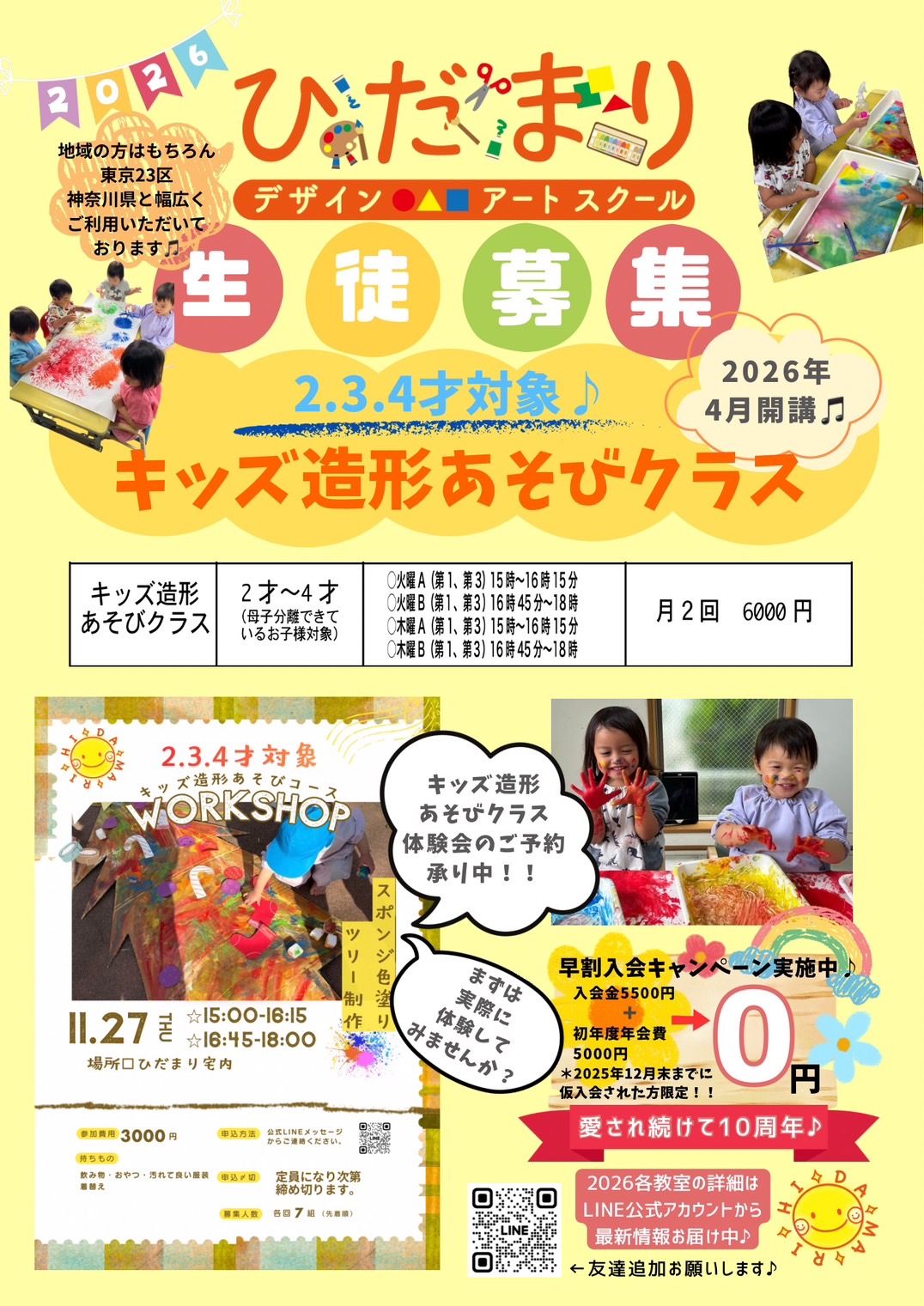 もちろん、線画デザイン教室や土日の子ども造形教室にプラスしてのご参加も大歓迎です✨